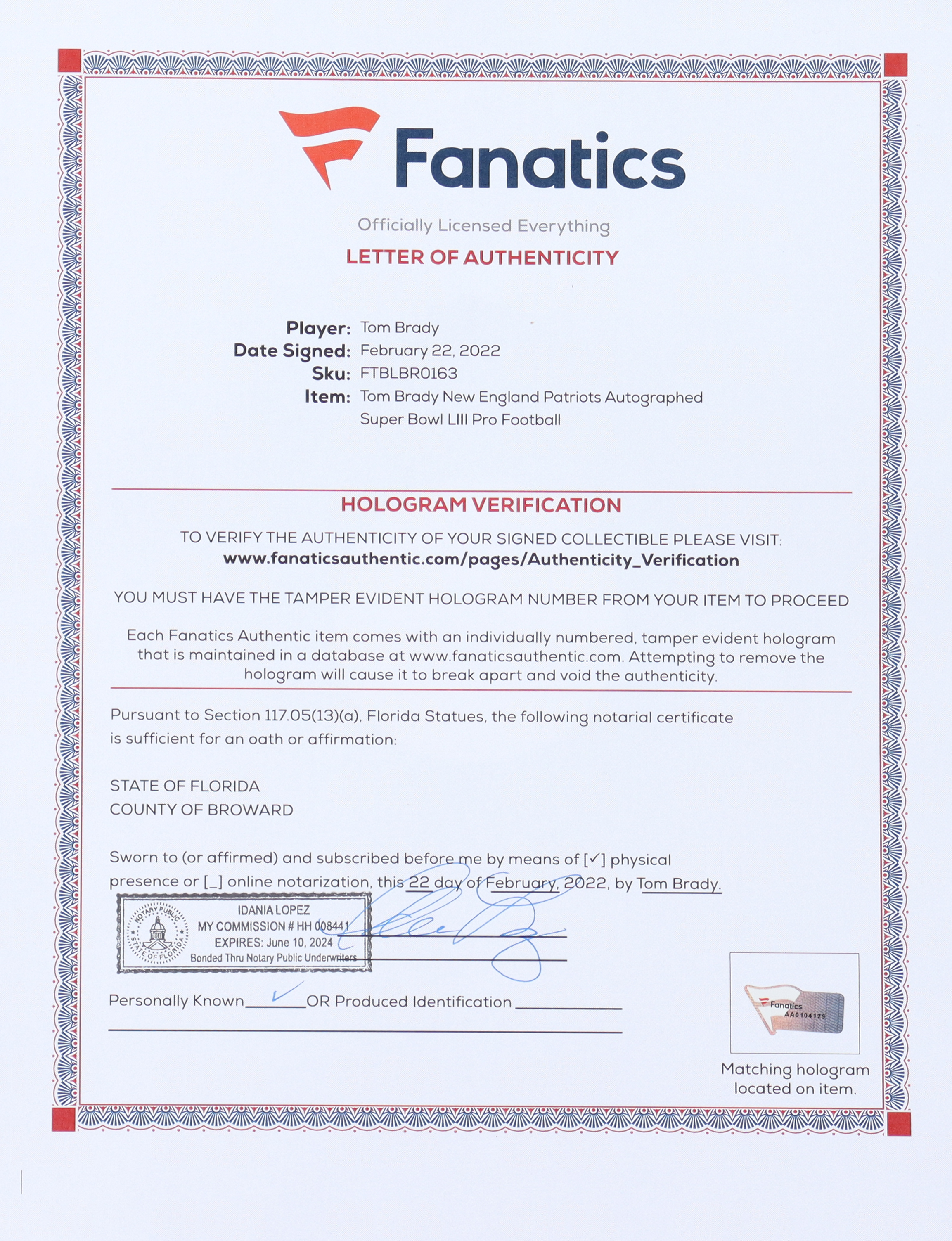 The autograph includes an official Fanatics hologram for authenticity purposes.