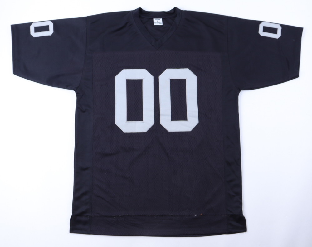 Custom jersey with everything sewn on, size XL. Hand-signed and inscribed by Jim Otto (HOF) Please note, there is residue and damage at the bottom of the jersey.