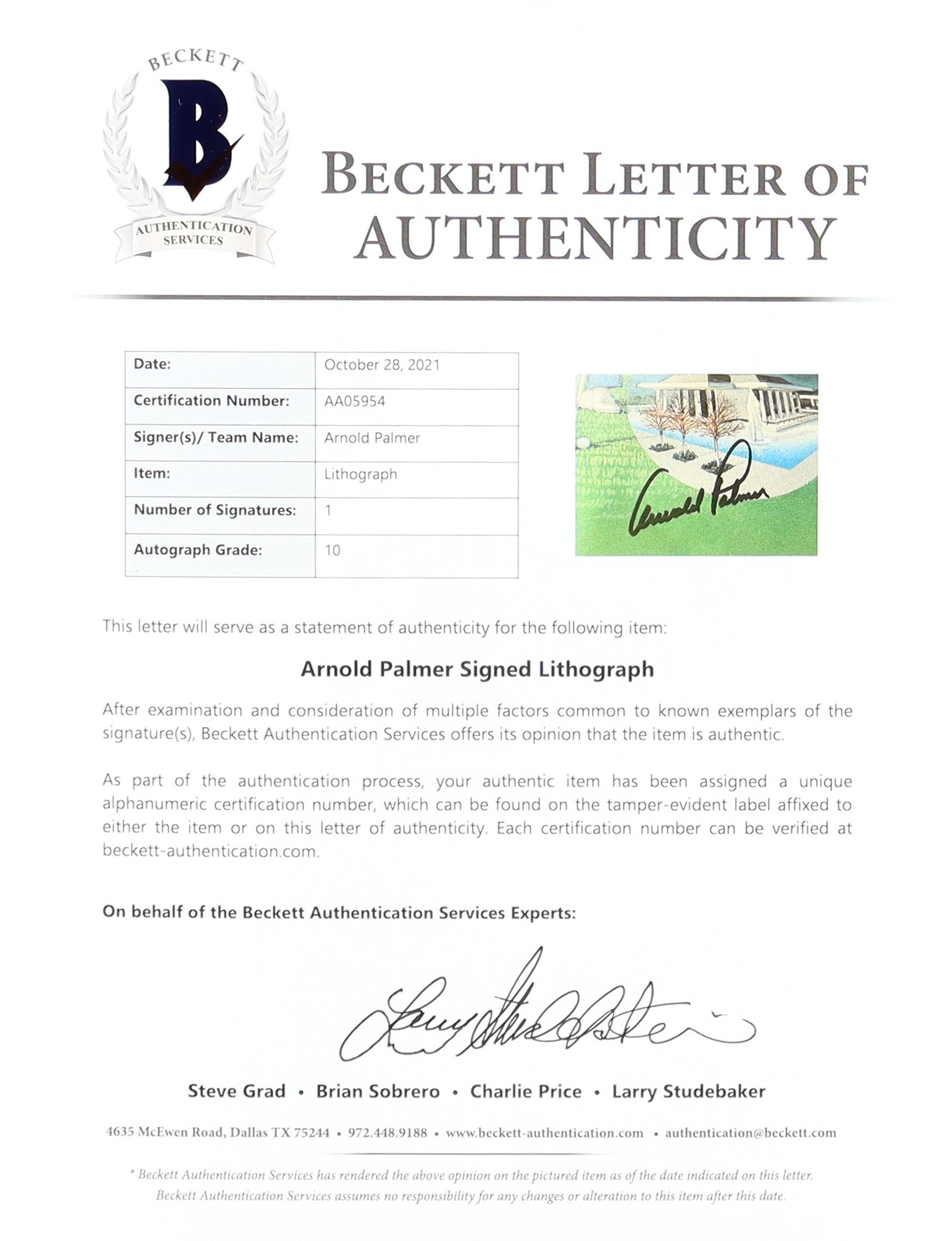 The autograph includes an official Beckett Authentication Services hologram and matching LOA for authenticity purposes.