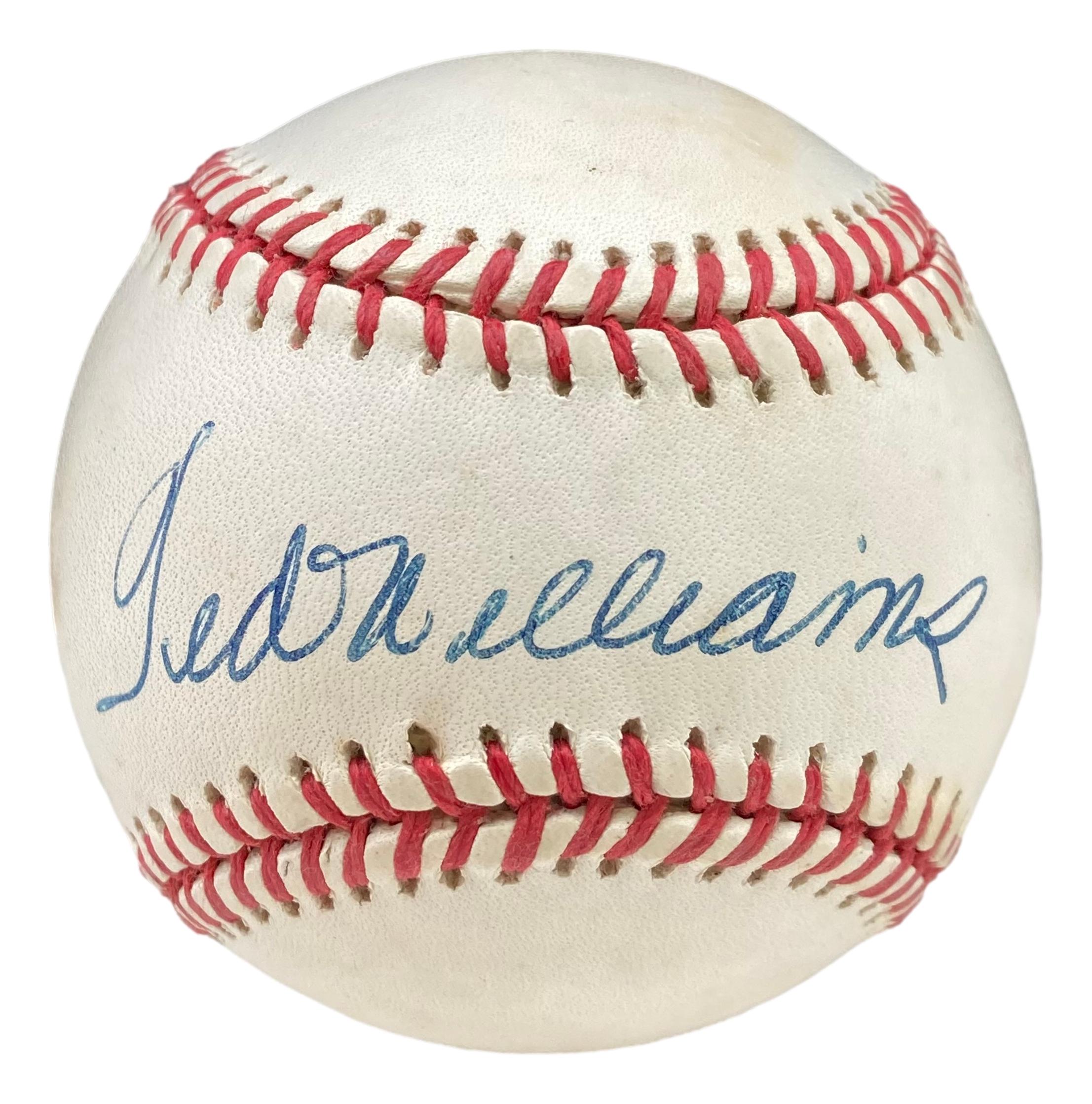 Rawlings Official American League baseball. Hand-signed by Ted Williams (D. 2002, Boston Red Sox, HOF). Please note, the baseball is naturally toned.