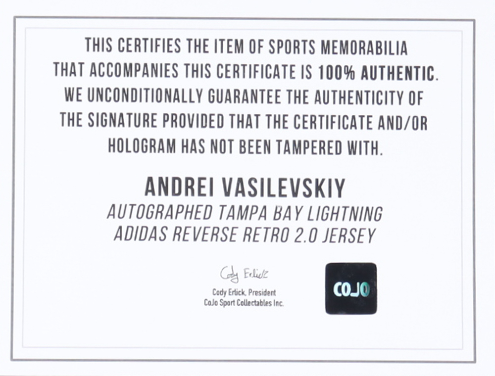 Andrei Vasilevskiy Signed Lightning Jersey (COJO)