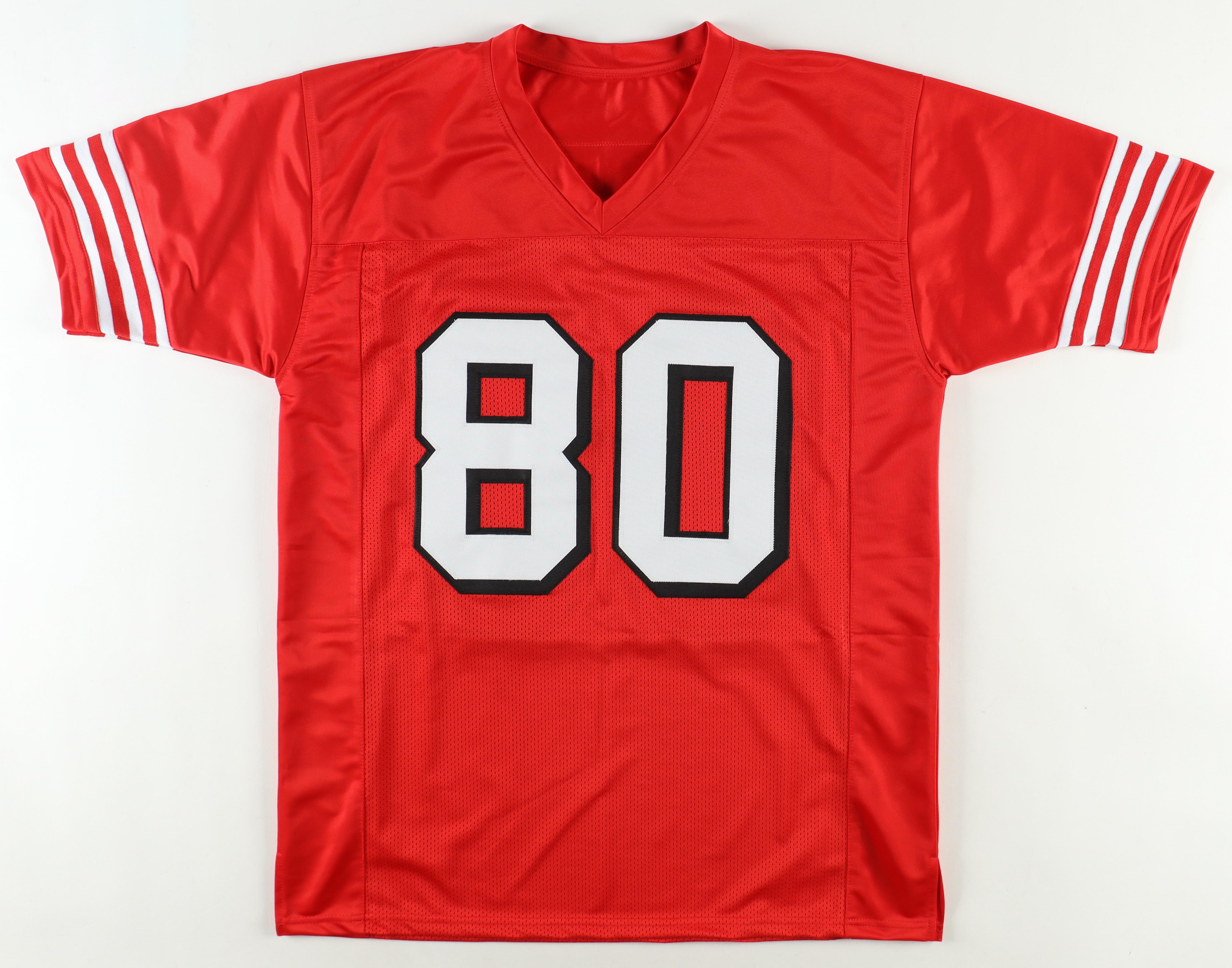 Custom jersey. Everything is sewn on, size XL. Hand-signed by Jerry Rice (HOF).