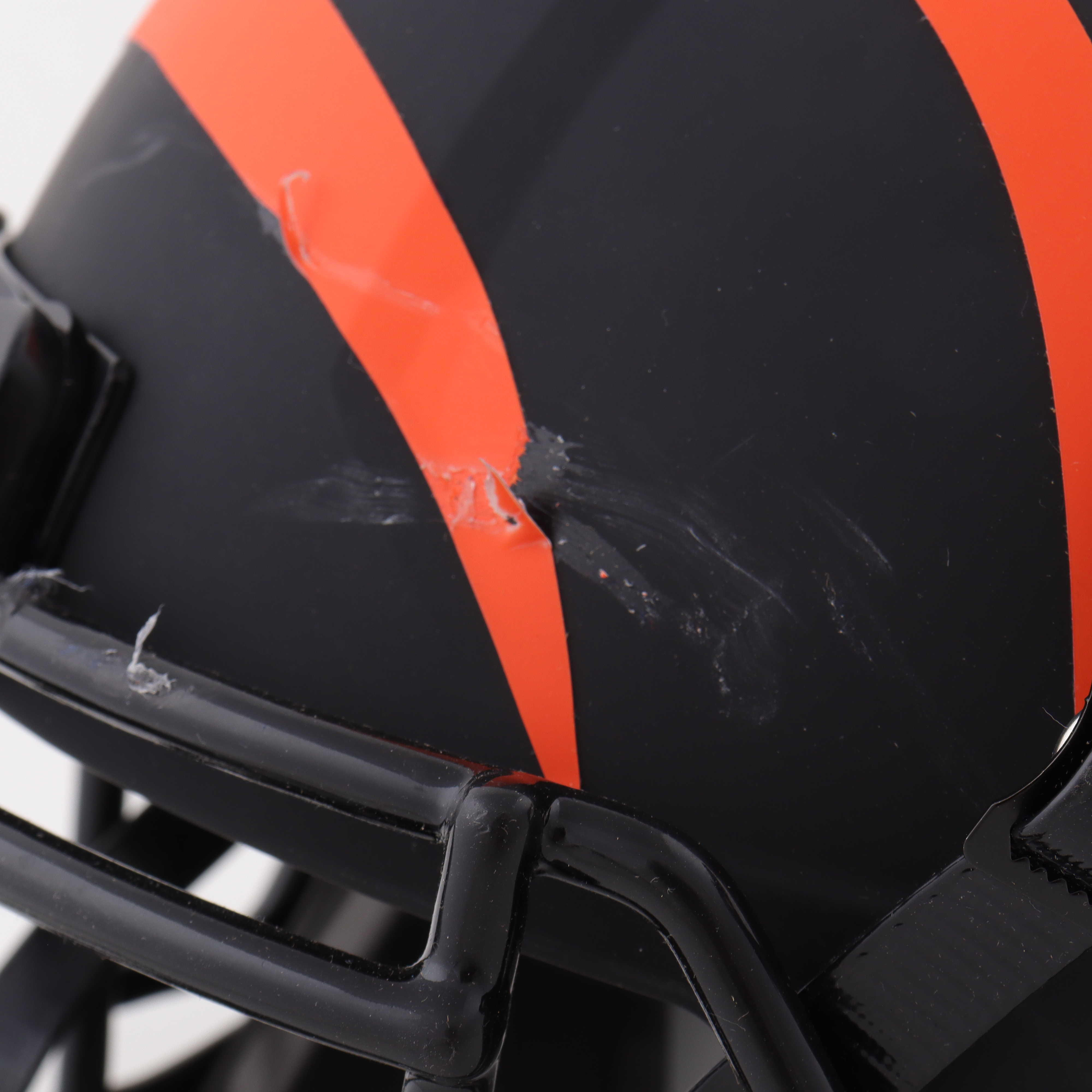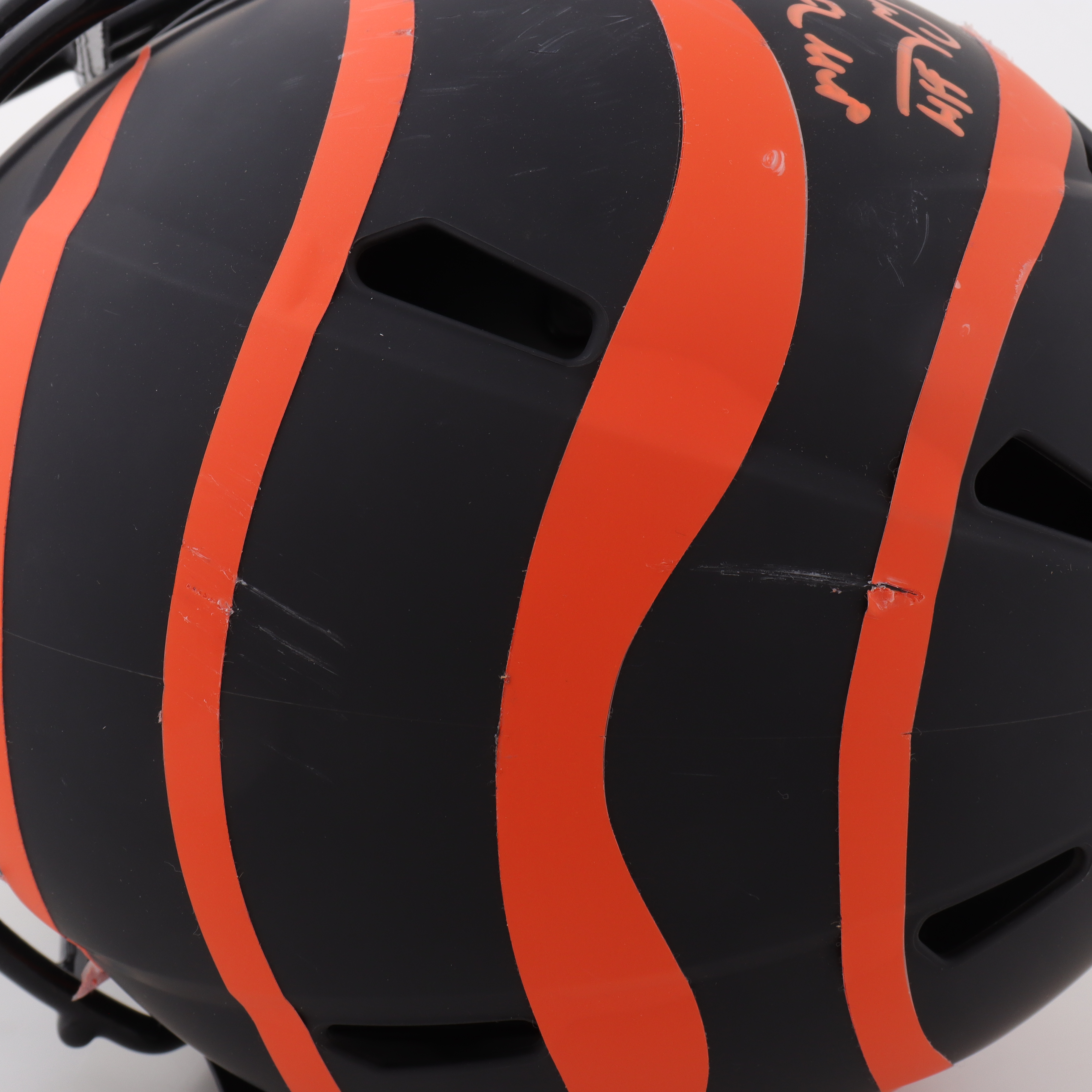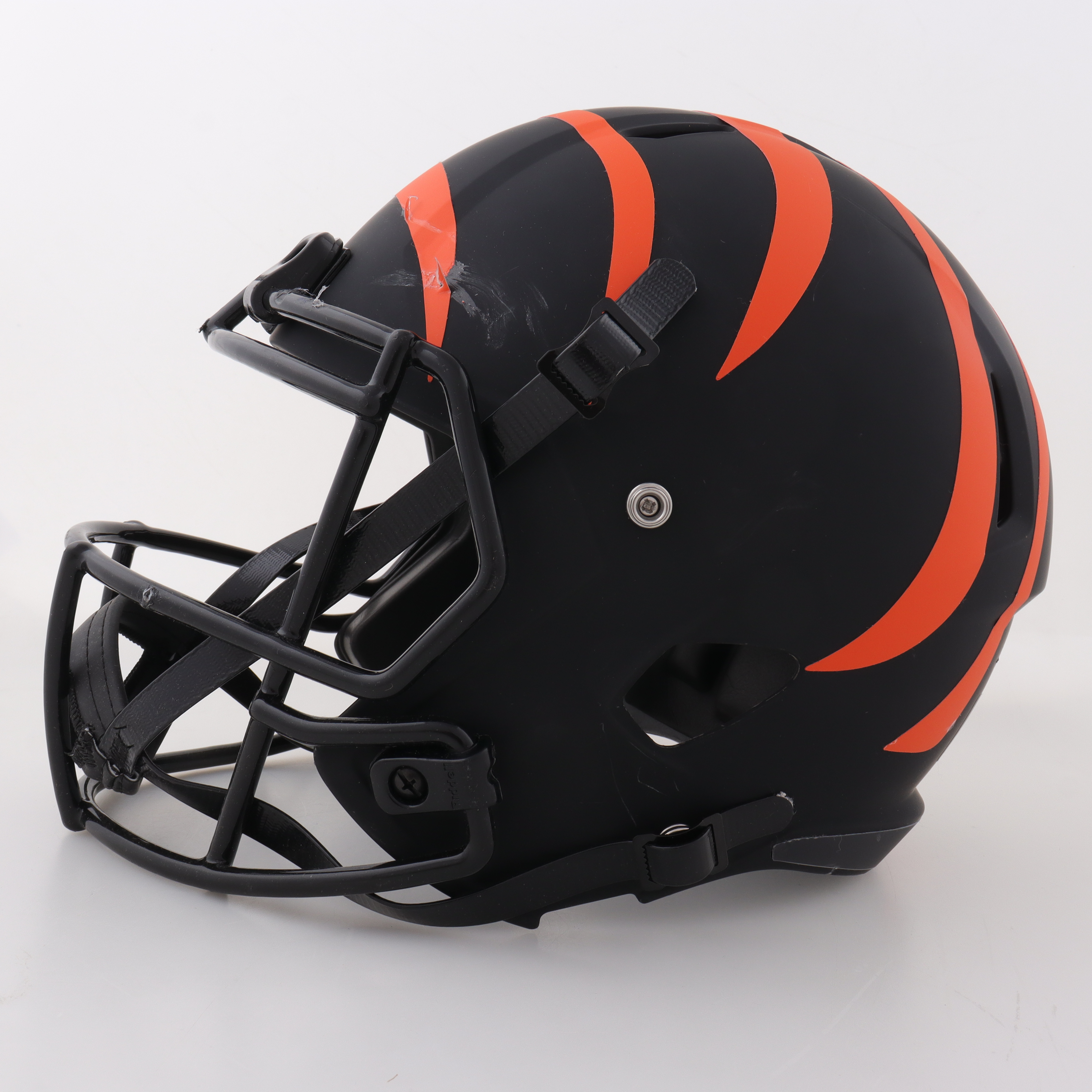 Riddell Cincinnati Bengals Full-Size Replica Eclipse Alternate Speed Helmet. Hand-signed by Ken Anderson. Please note the helmet is heavily damaged, see photos for details on all damages.