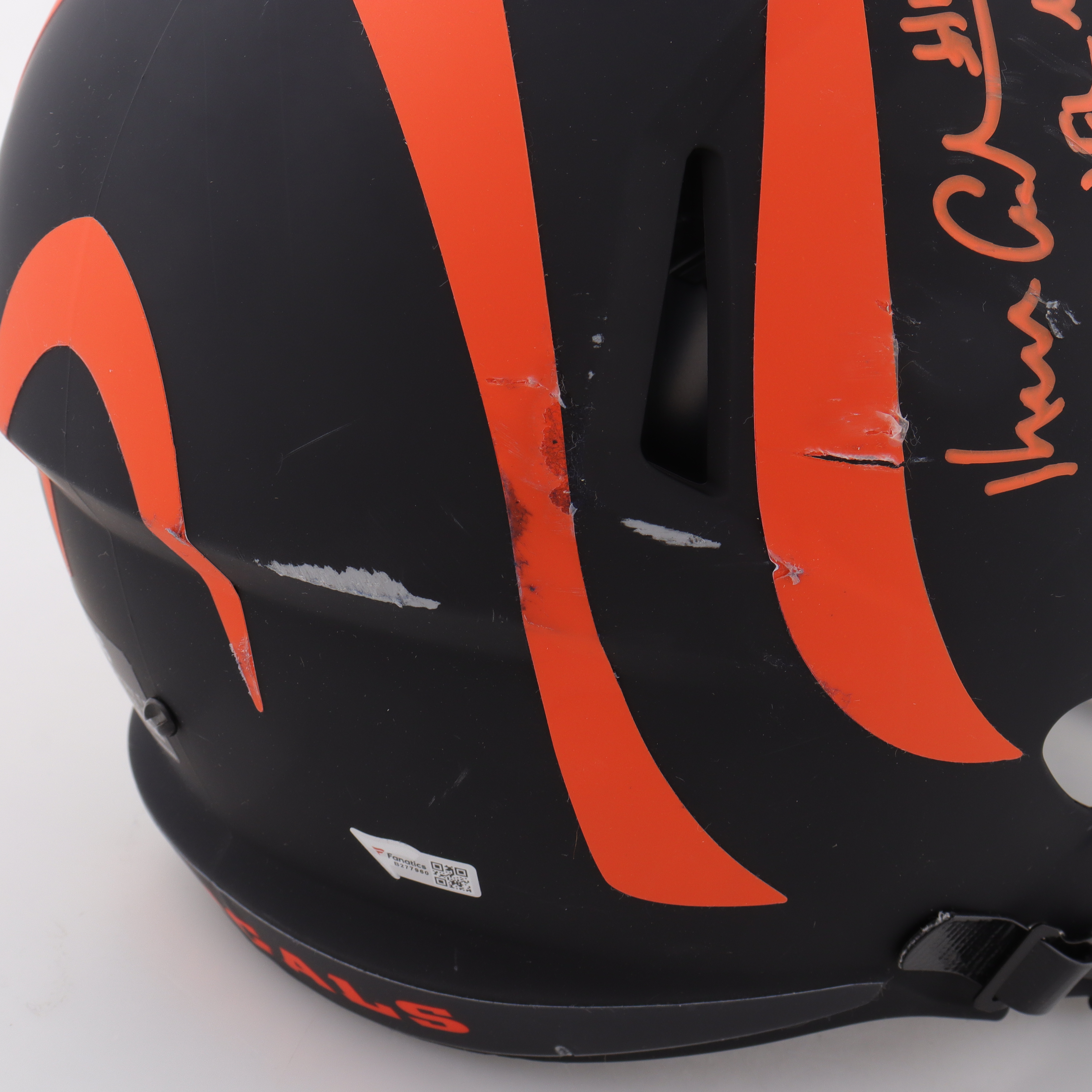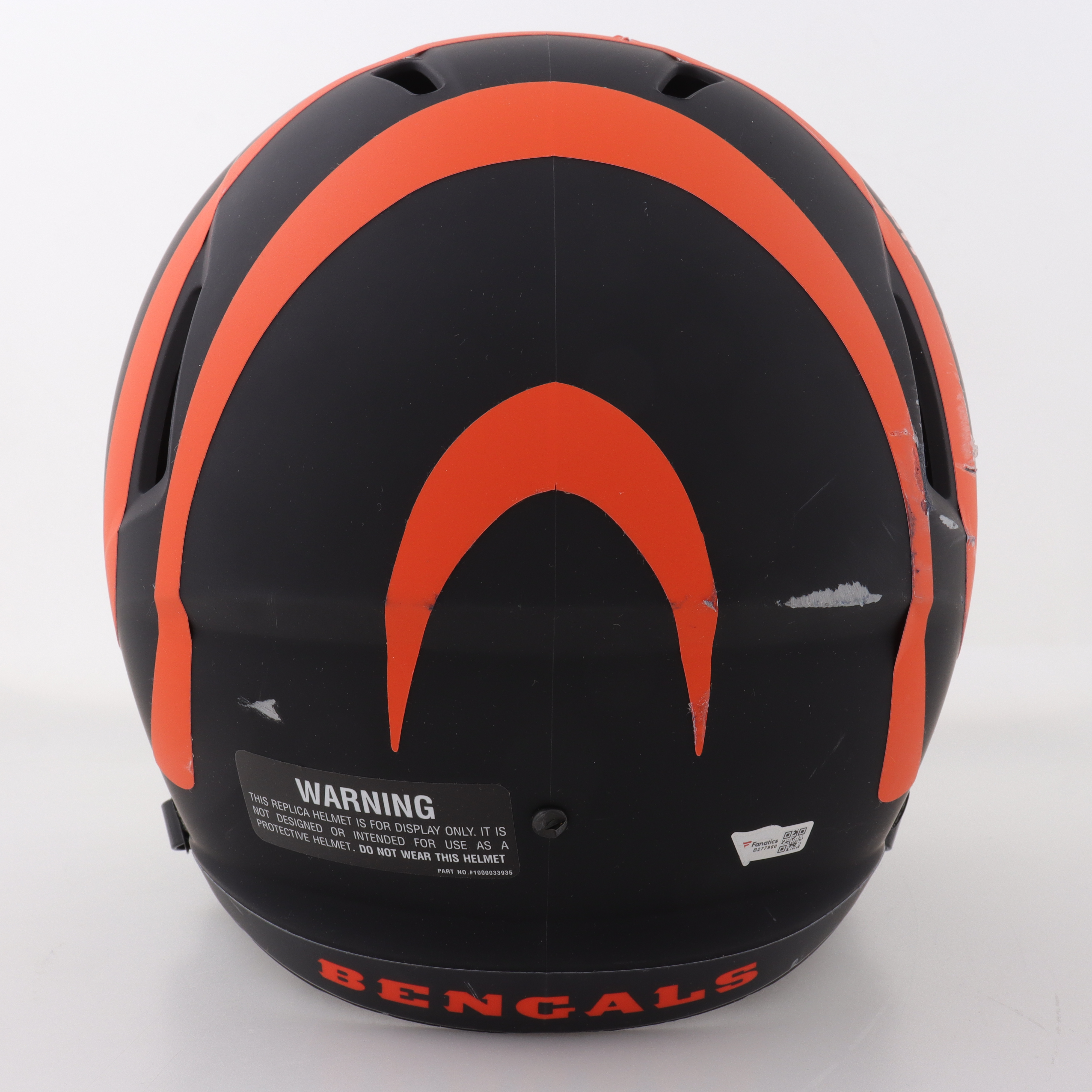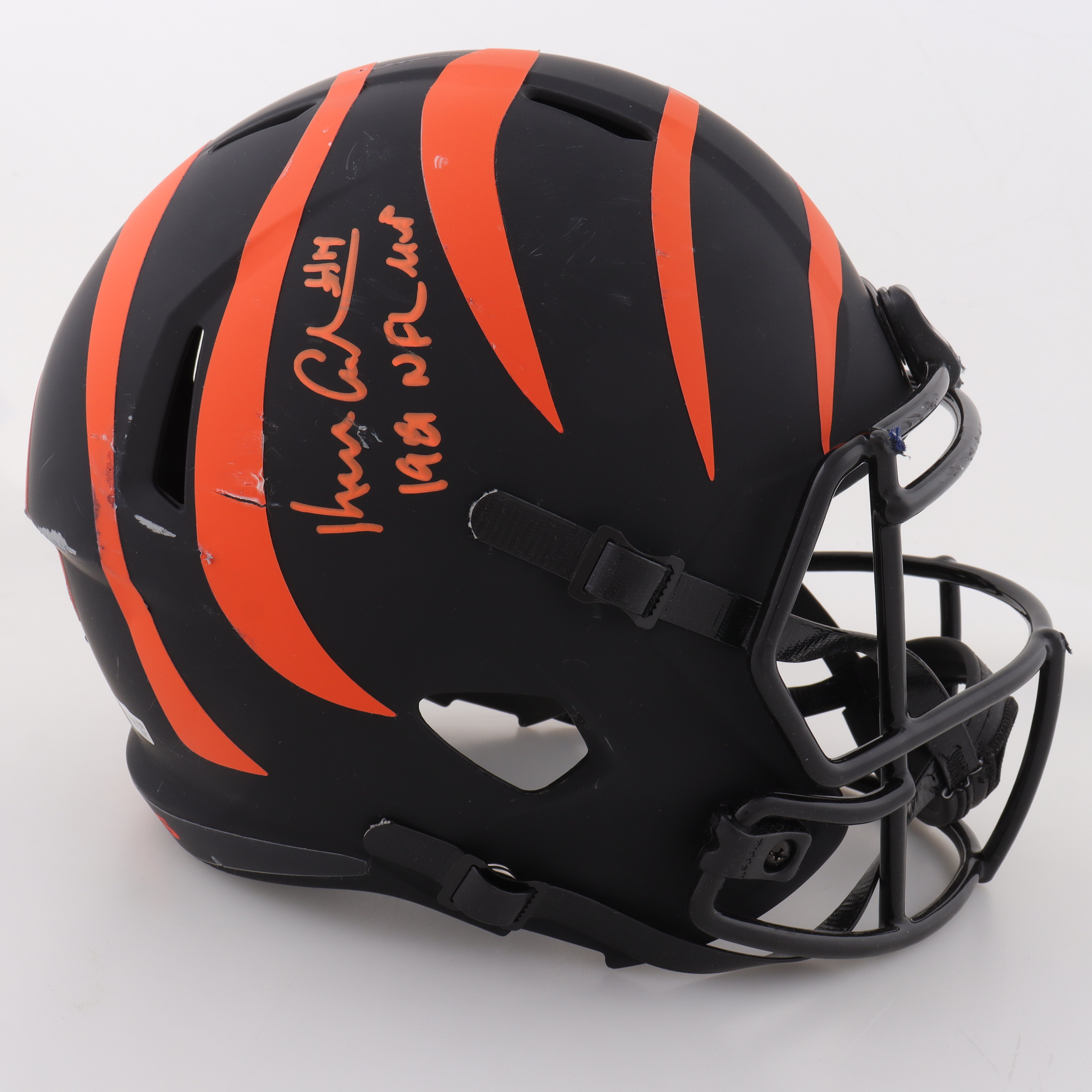 Riddell Cincinnati Bengals Full-Size Replica Eclipse Alternate Speed Helmet. Hand-signed by Ken Anderson. Please note the helmet is heavily damaged, see photos for details on all damages.
