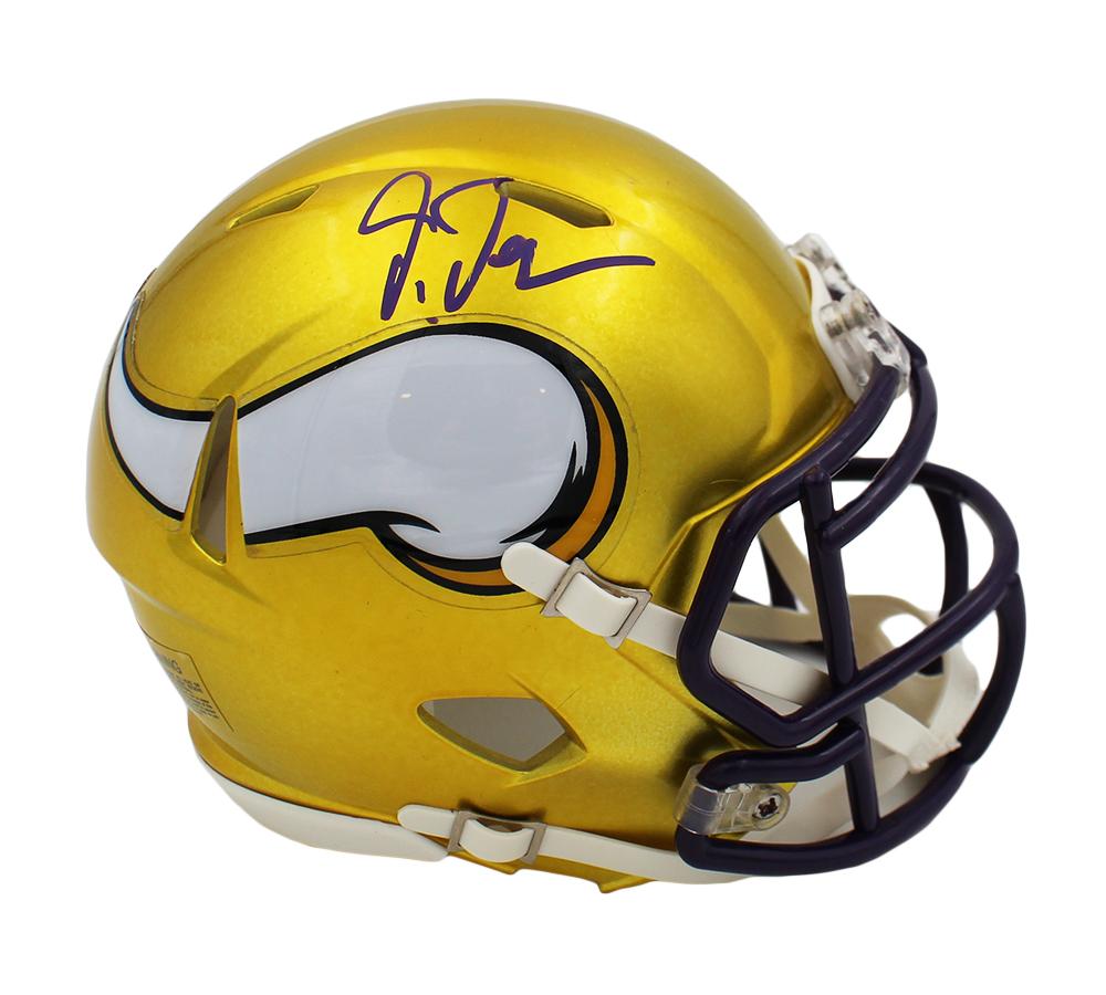 Riddell Minnesota Vikings Flash Alternate speed mini helmet. Hand-signed by Justin Jefferson.