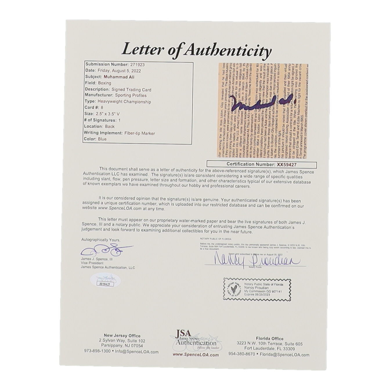 The autograph(s) includes an official James Spence Authentication (JSA) hologram and matching LOA for authenticity purposes.