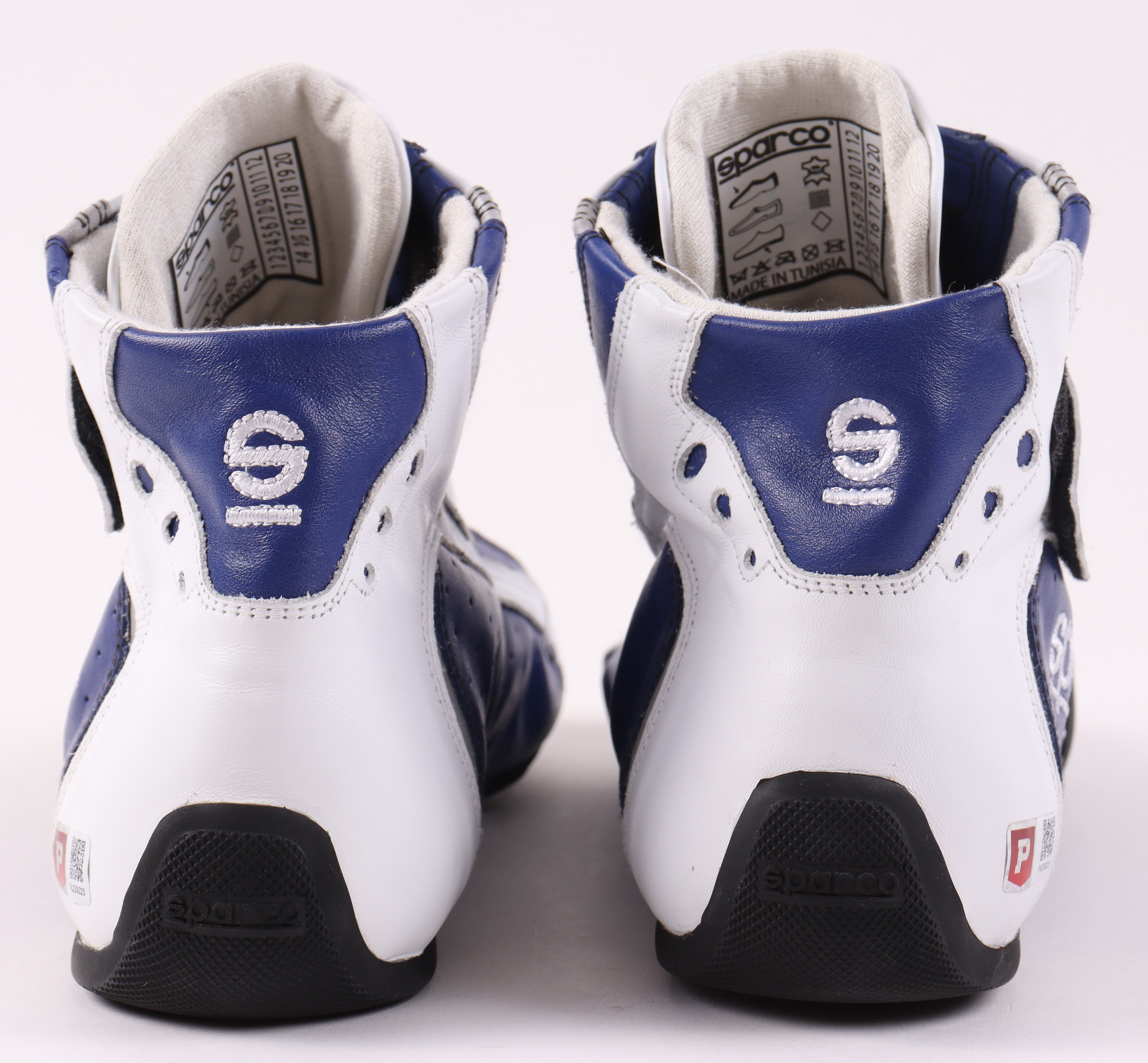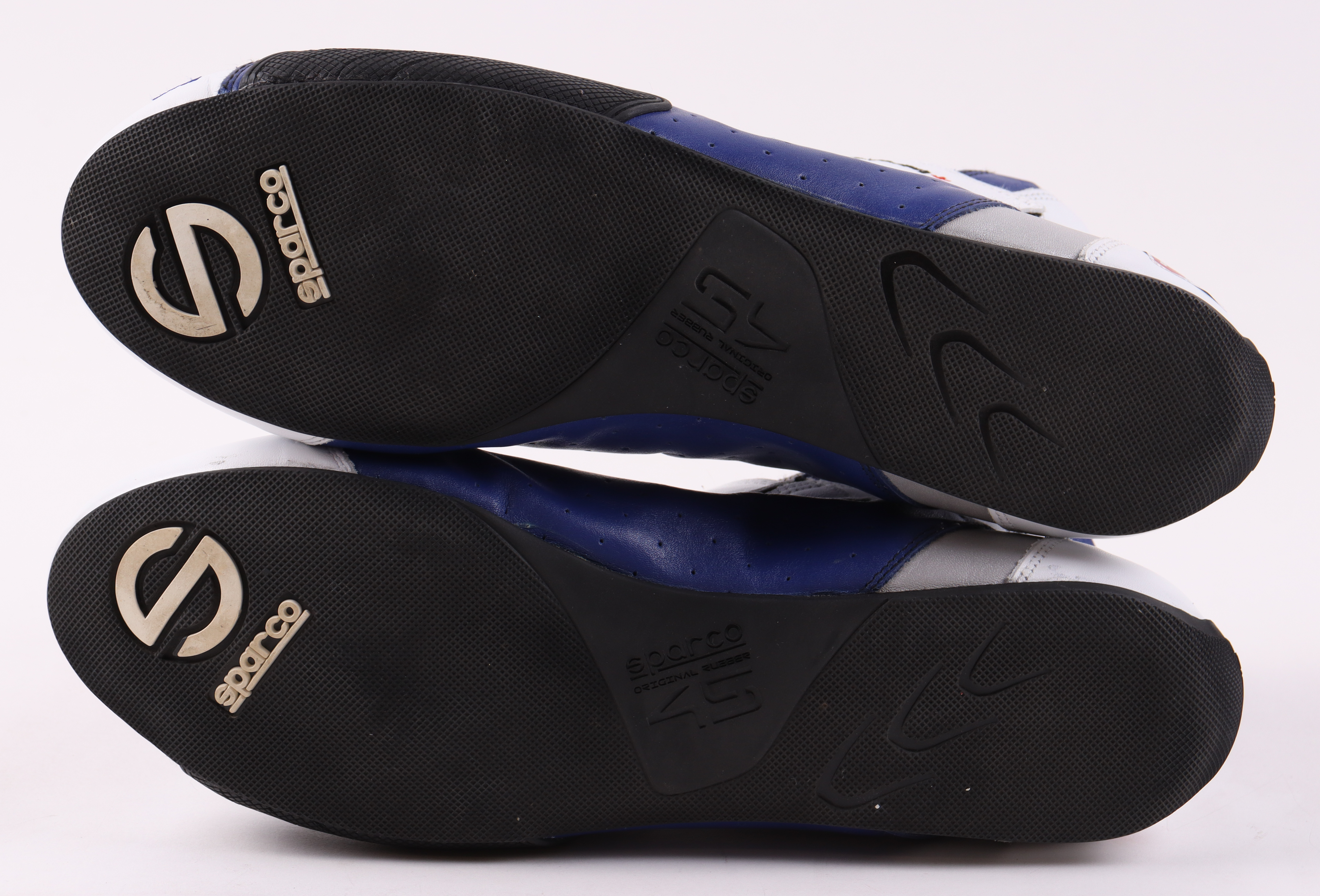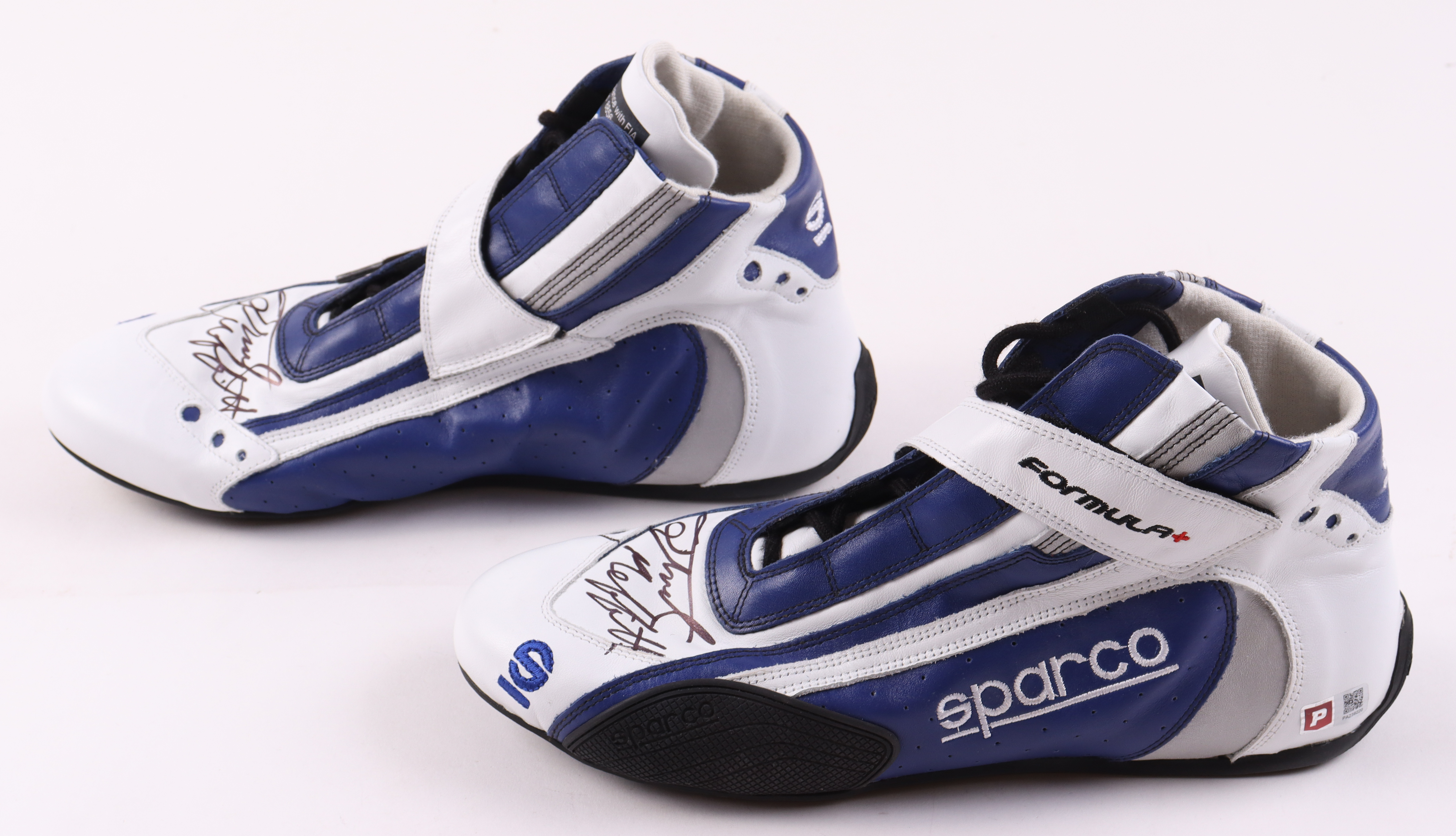 This pair of shoes comes from Thad Moffitt's collection and both are hand-signed by Moffitt. The shoes were issued to Moffitt for race use.
