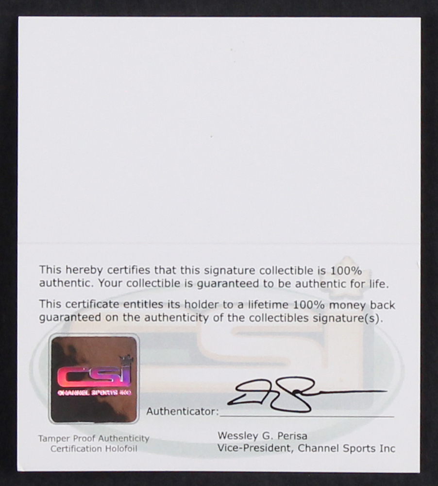The autograph includes an official Channel Sports Inc. (CSI) hologram for authenticity purposes.