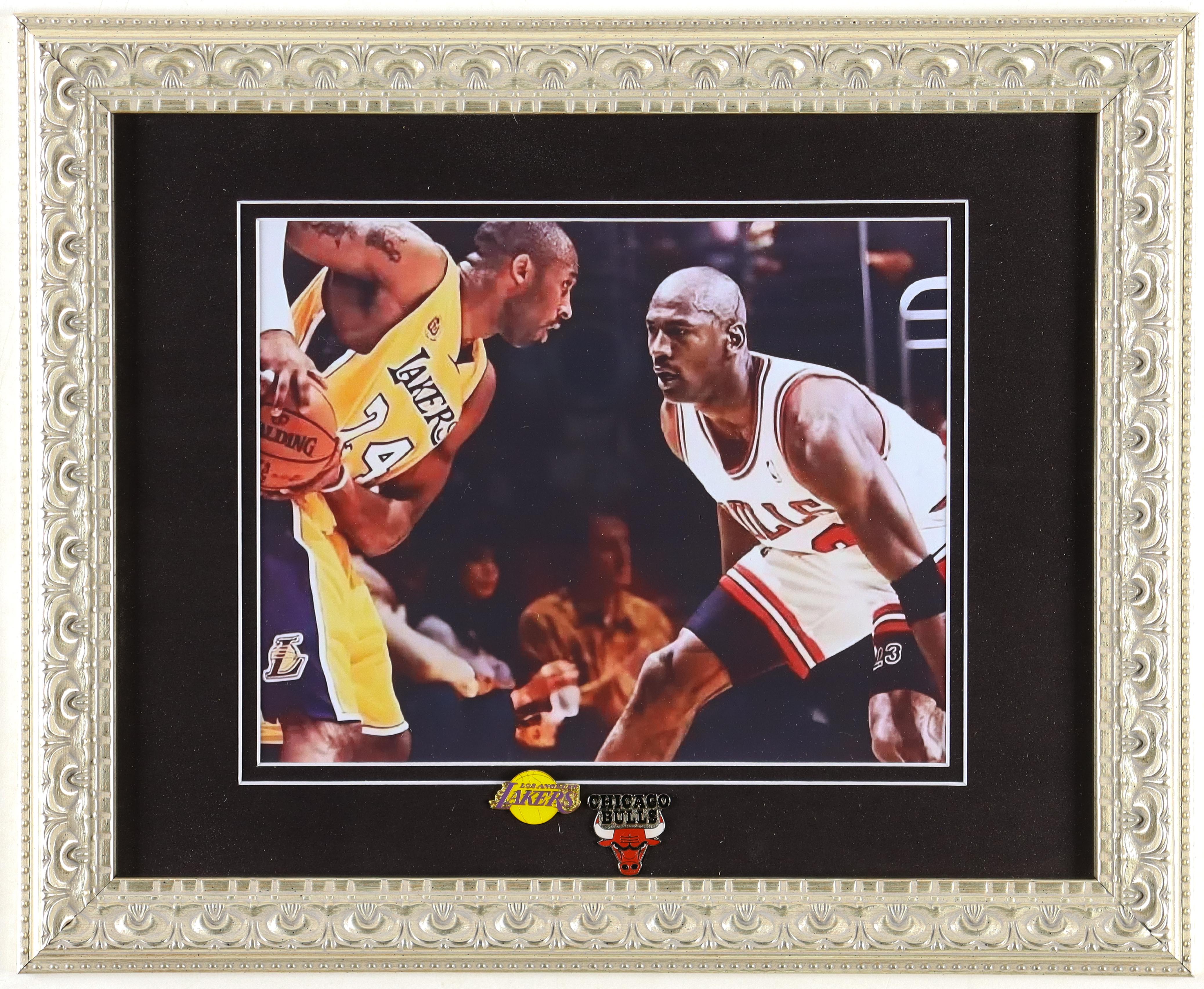 Kobe Bryant & Michael Jordan Custom Framed Photo With Lakers & Bulls Logo Pins
