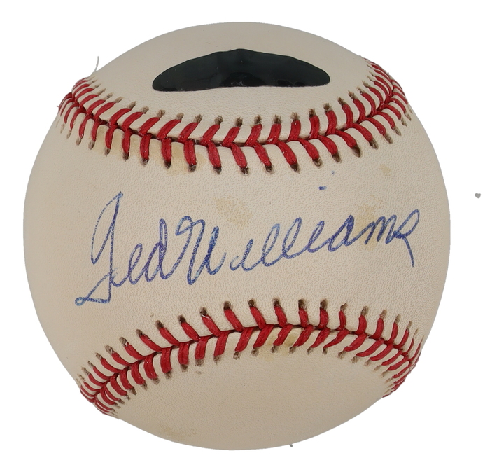 Rawlings Official American League Baseball has been hand-signed by Ted Williams (D. 2002, Boston Red Sox, HOF). Please note, the baseball is naturally toned.