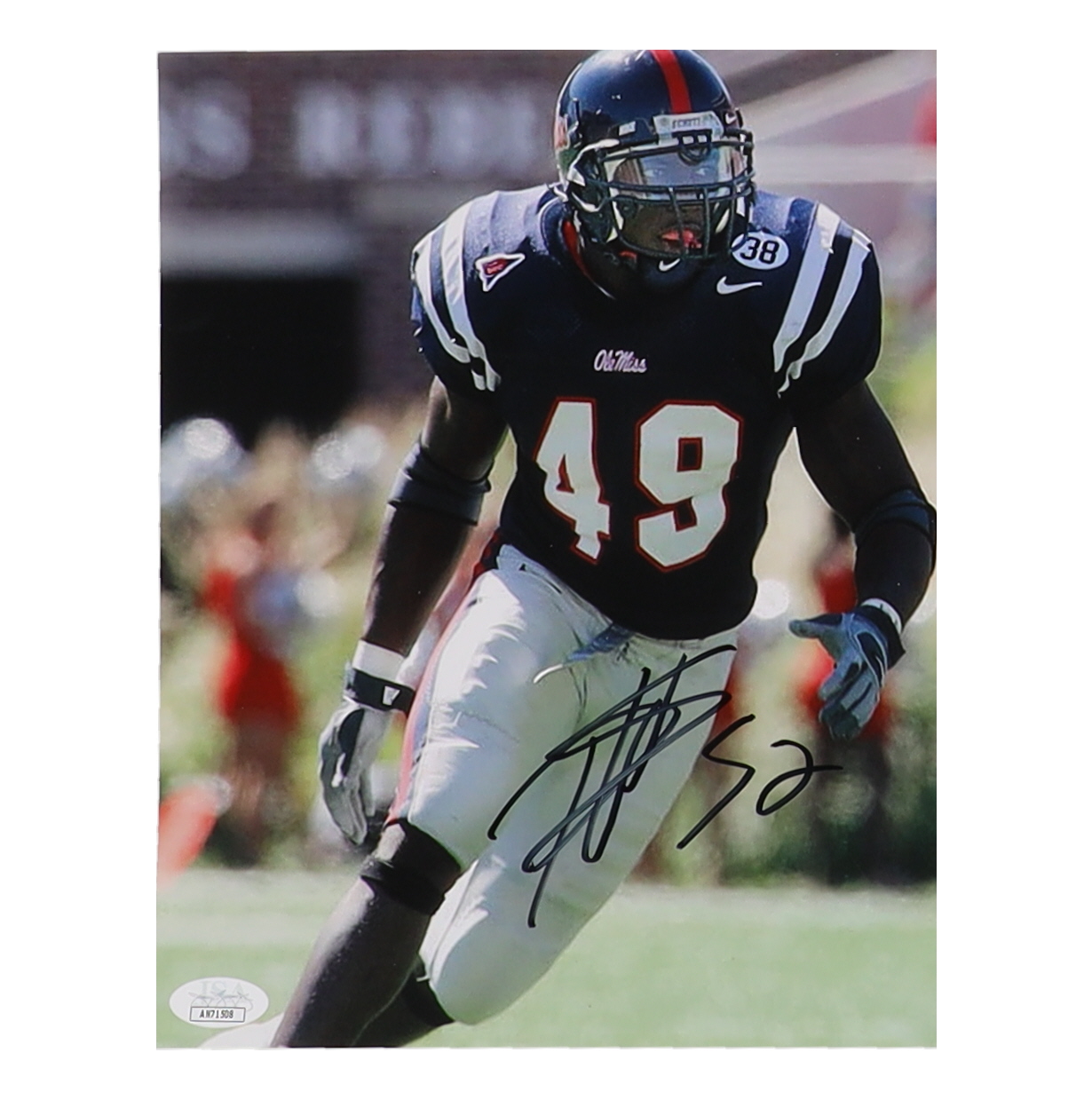 Photo measures 8" x 10" in size and has been hand-signed by Patrick Willis (Ole Miss Rebels, HOF).