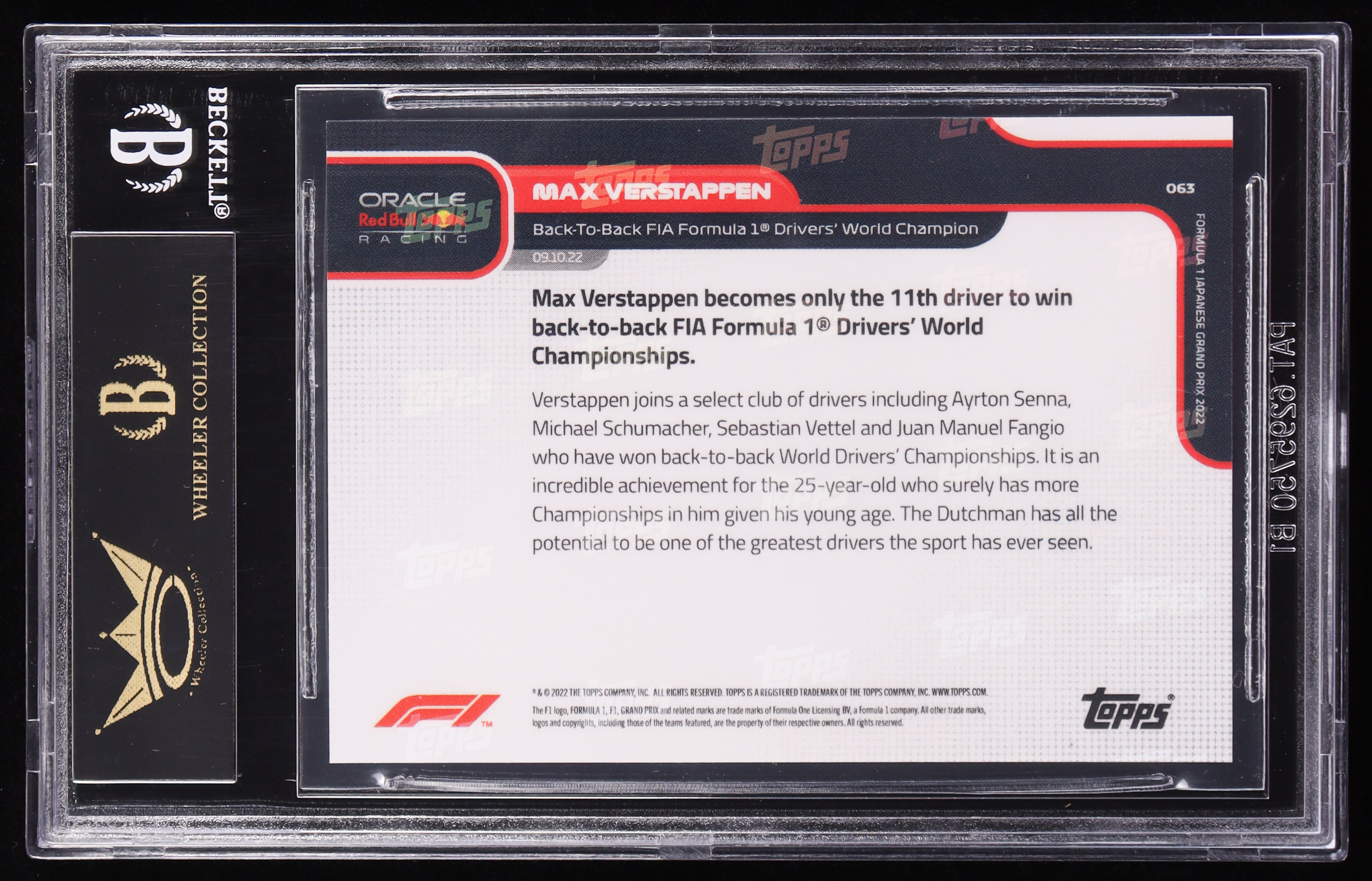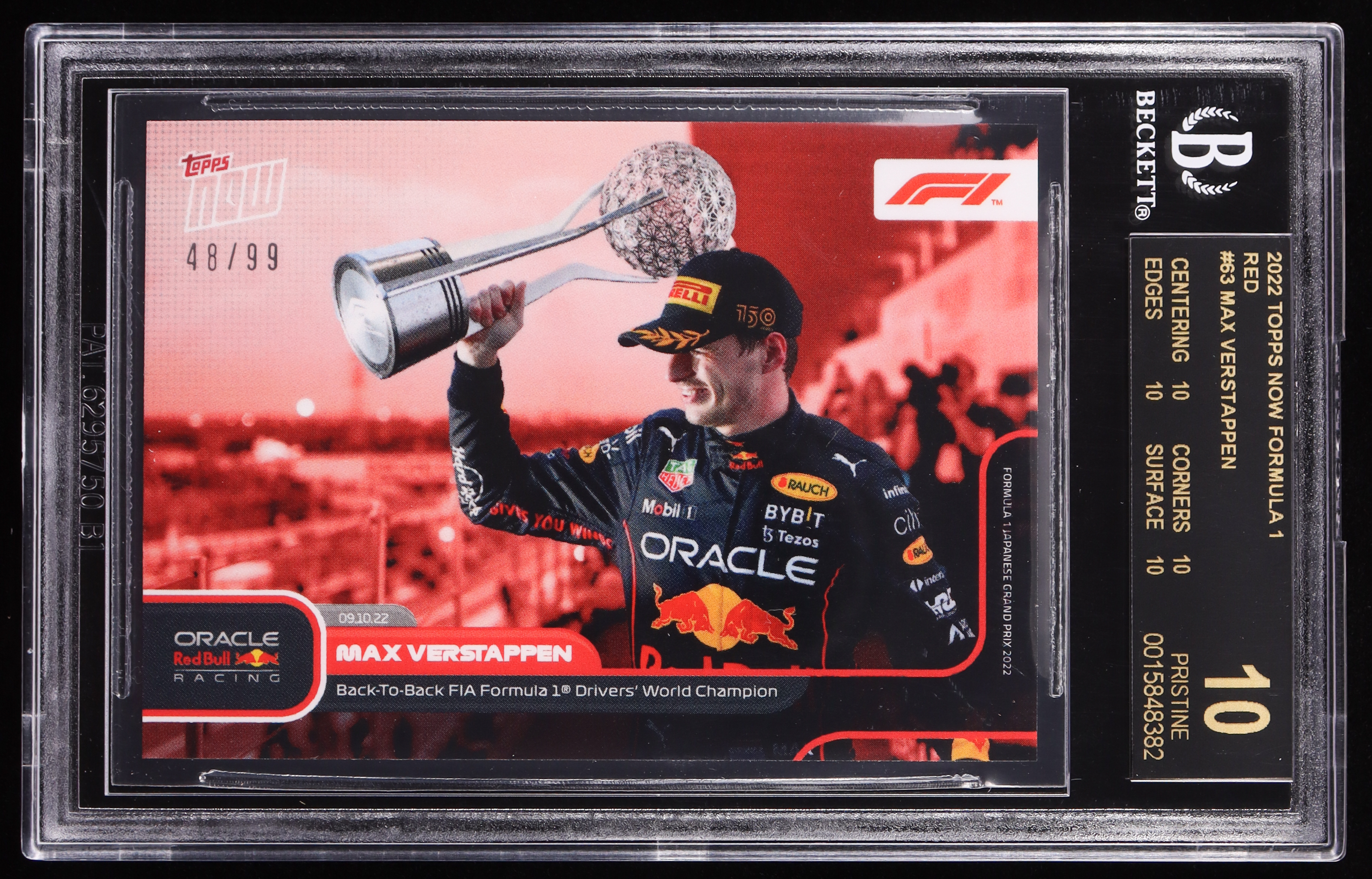 Max Verstappen 2022 Topps Now Formula 1 Red #63 #48/99 (BGS Black Label 10)