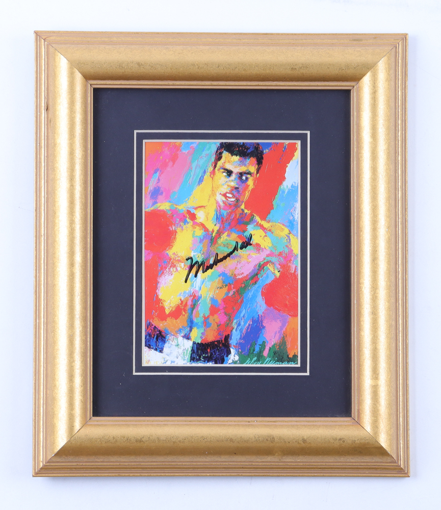 Custom frame measures approximately 11" x 13" in size and features a Leroy Neiman (D. 2012) art print that has been hand-signed by Muhammad Ali (D. 2016).
