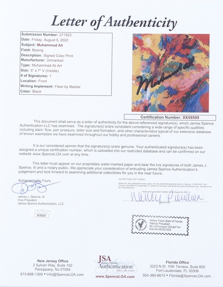 This featured auction comes from the personal collection of Muhammad Ali's former attorney, Paul Jancha. This Bio was provided by Paul: After graduating from Mason High School and Alma College with Honors in 1971, I attended law school at the University of Notre Dame, graduating in 1974. Over nearly 50 years, I've represented countless individuals in various legal matters. Settling in Berrien Springs, Michigan, I formed a deep friendship with Muhammad Ali, engaging in community activities and supporting each other through endeavors and challenges. From facilitating Ali's business ventures to accompanying him to significant events like Super Bowl XXVI, our bond transcended professional interactions. His passing in 2016 marked a profound loss, but our friendship remains a cherished blessing in my life.