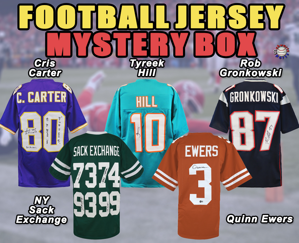 1 SIGNED FOOTBALL JERSEY PER BOX!! - (Rob Gronkowski, Quinn Ewers, Tyreek Hill & More)