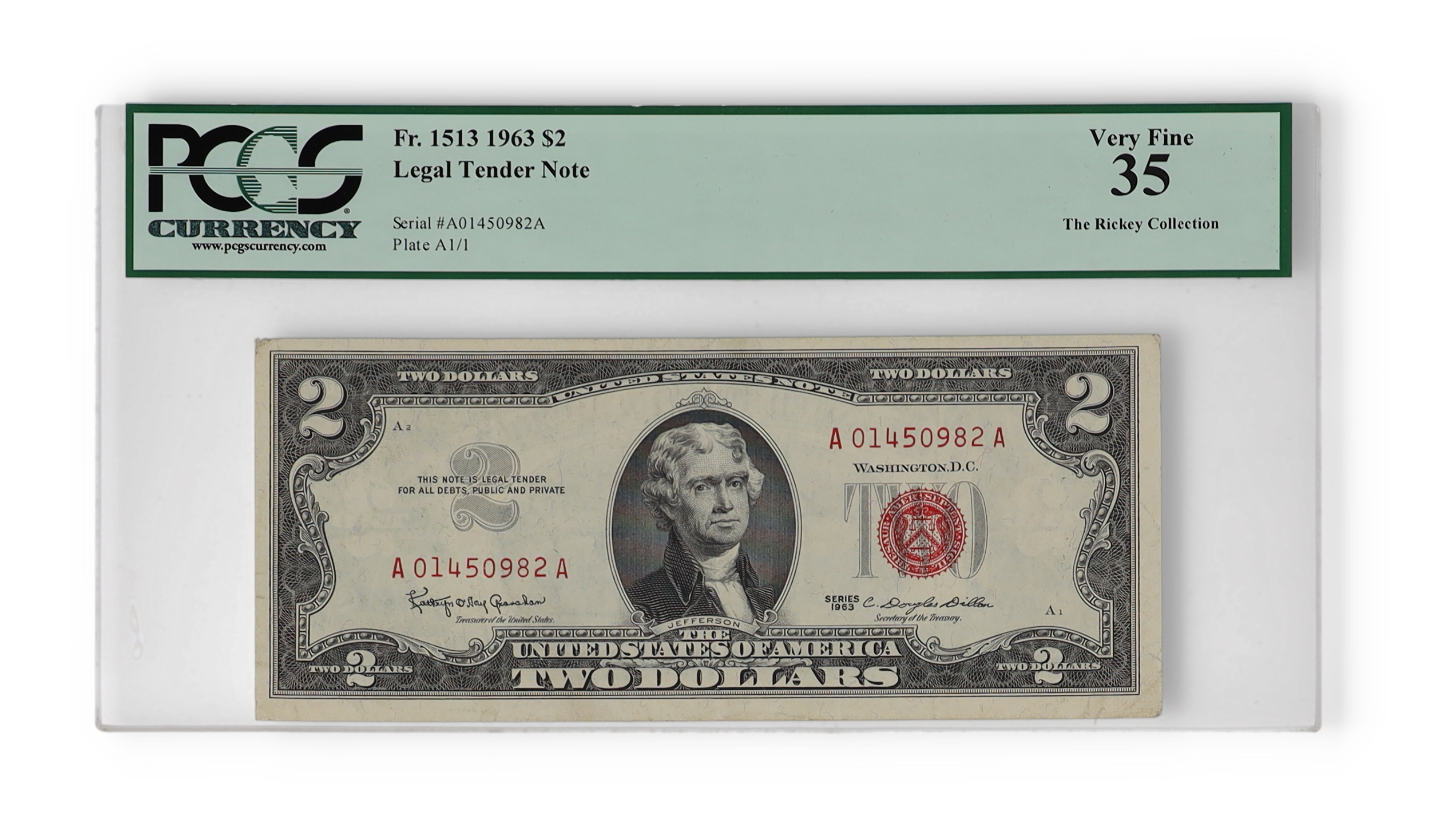 1963 United States Legal Tender $2 Two Dollar Note (PCGS Very Fine 35)