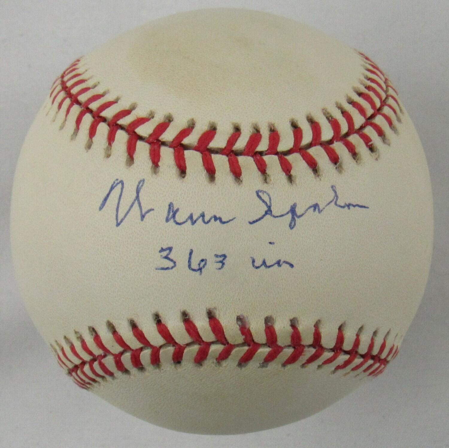 Warren Spahn Signed ONL Baseball Inscribed "363 Win" (JSA)