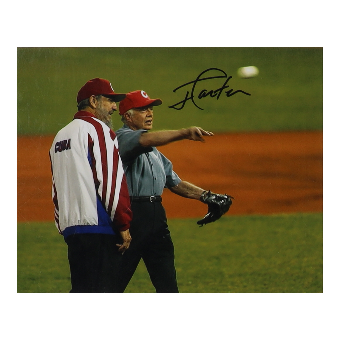 Jimmy Carter Signed 8x10 Photo with Fidel Castro, Baseball, Cuba (JSA)