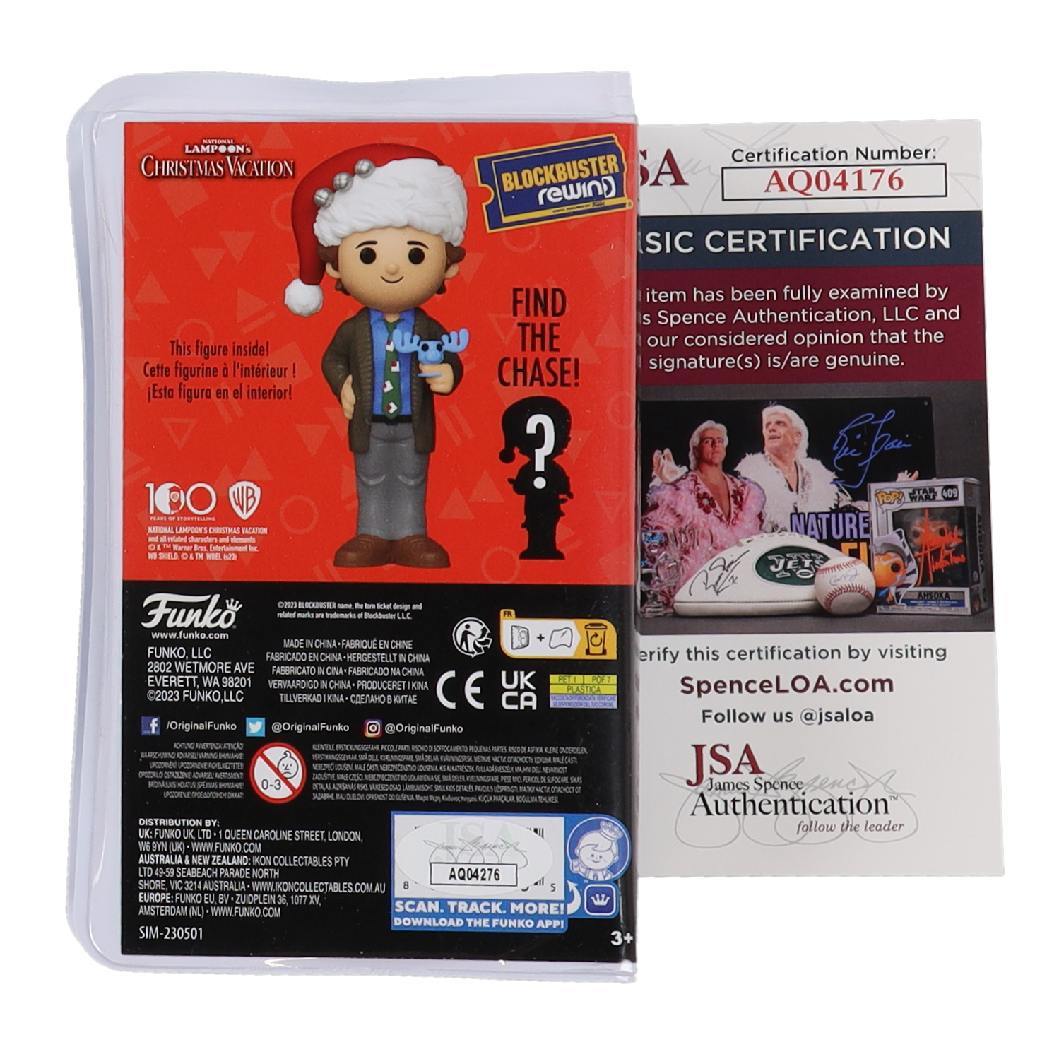 Funko vinyl figure measures approximately 4" in height and has been hand-signed on the packaging by Chevy Chase (Clark W. Griswold).