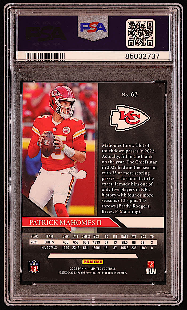Patrick Mahomes II 2022 Limited Holographic Spotlight #63 #04/22 (PSA 9)