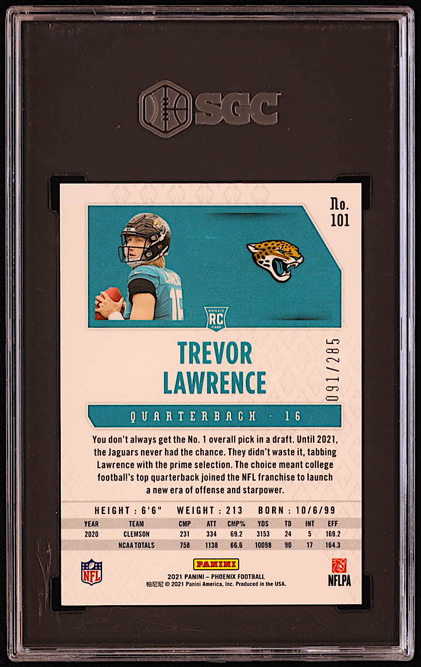 Trevor Lawrence 2021 Panini Phoenix Red Lazer #101 #091/285 RC (SGC 9)