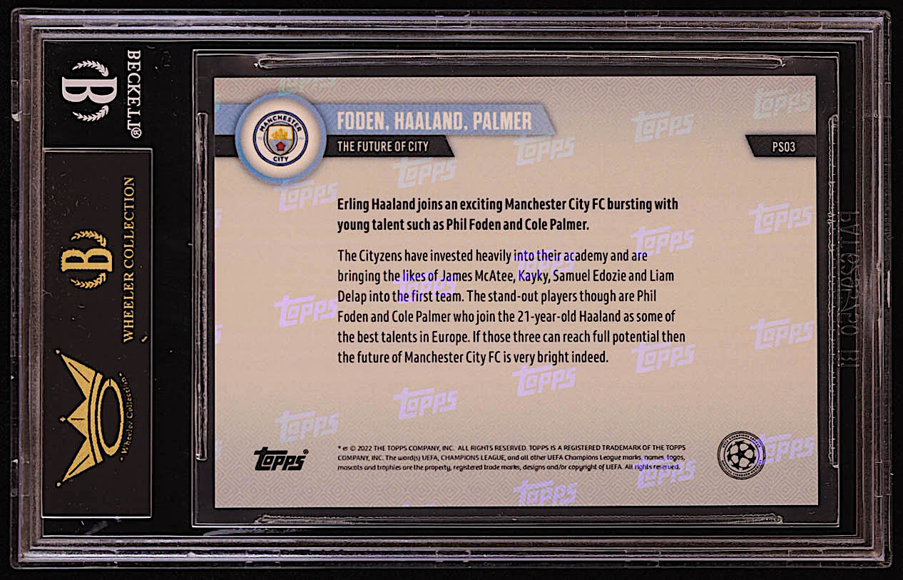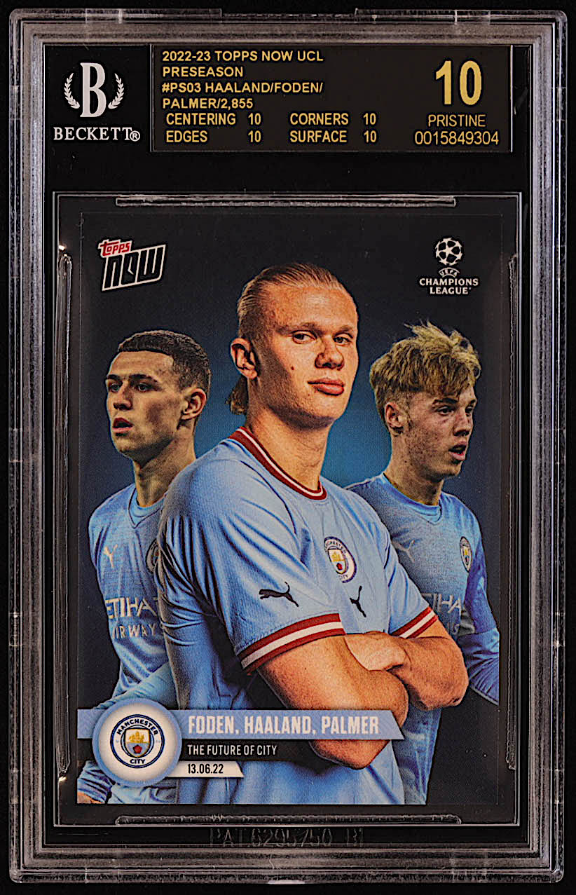 Erling Haaland / Phil Foden / Cole Palmer 2022-23 Topps Now UEFA Champions League Preseason #PS03 (BGS Black Label 10)