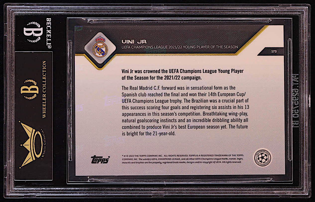 Vini Jr 2021-22 Topps Now UEFA Champions League Purple #173 #06/99 (BGS Black Label 10)