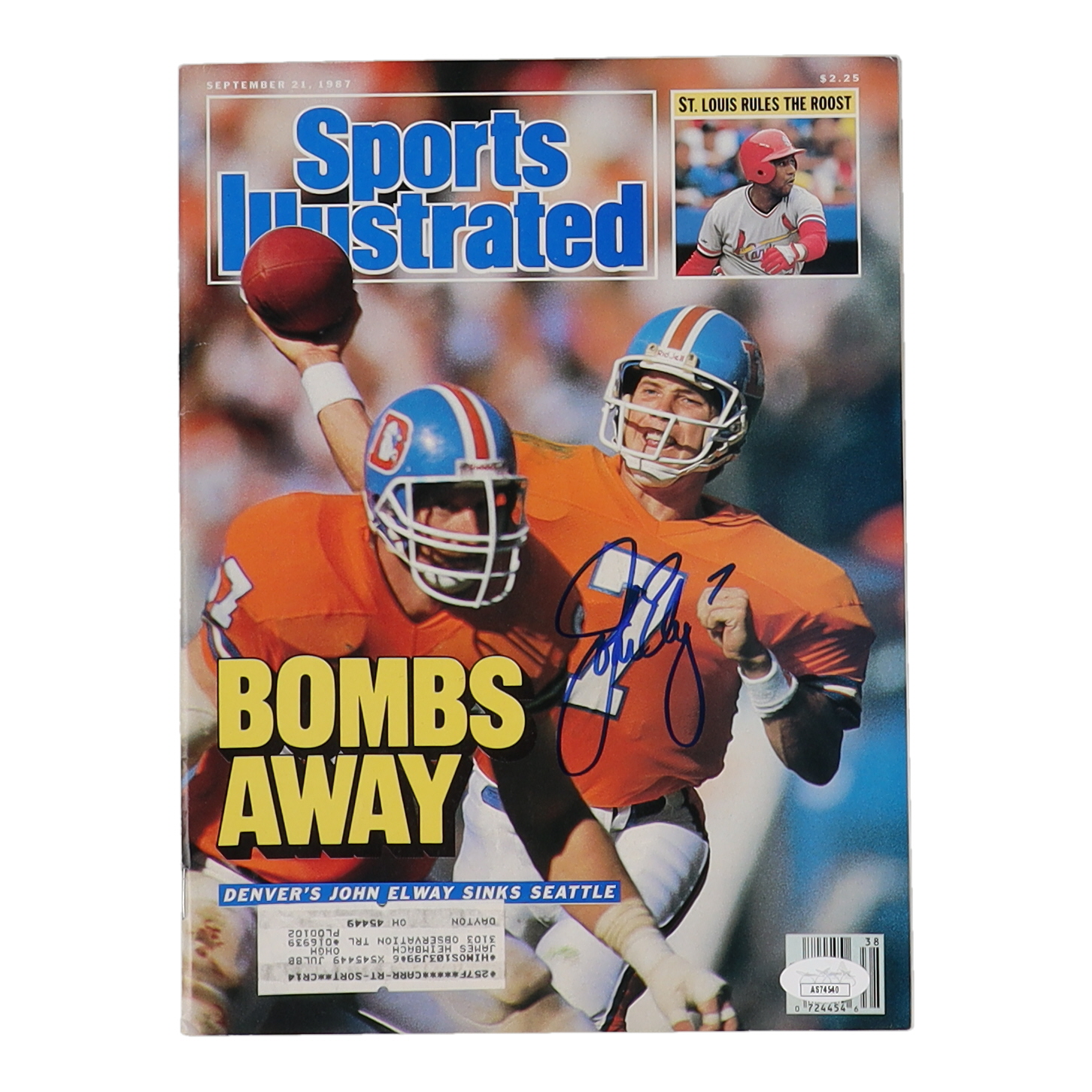 September 21, 1987 magazine has been hand signed by John Elway (Denver Broncos, HOF).