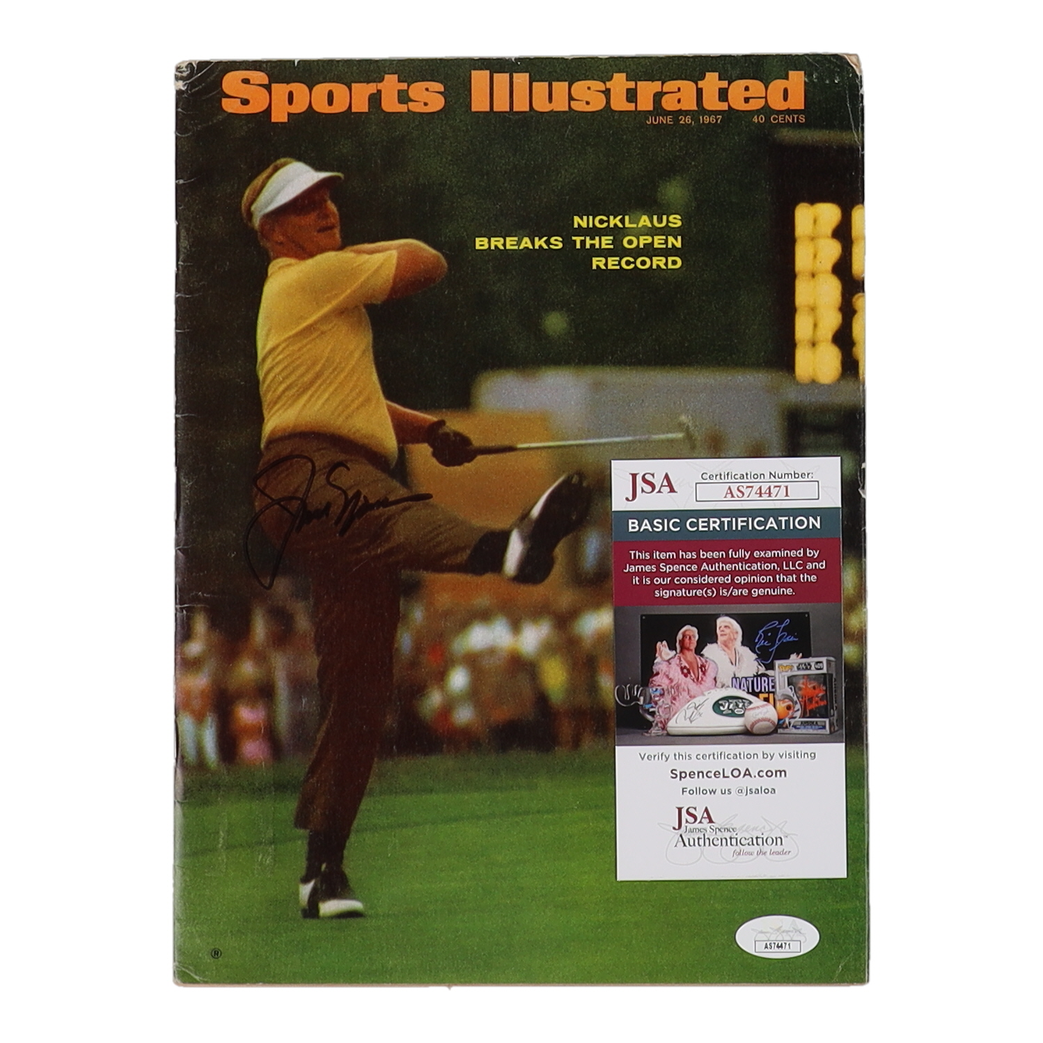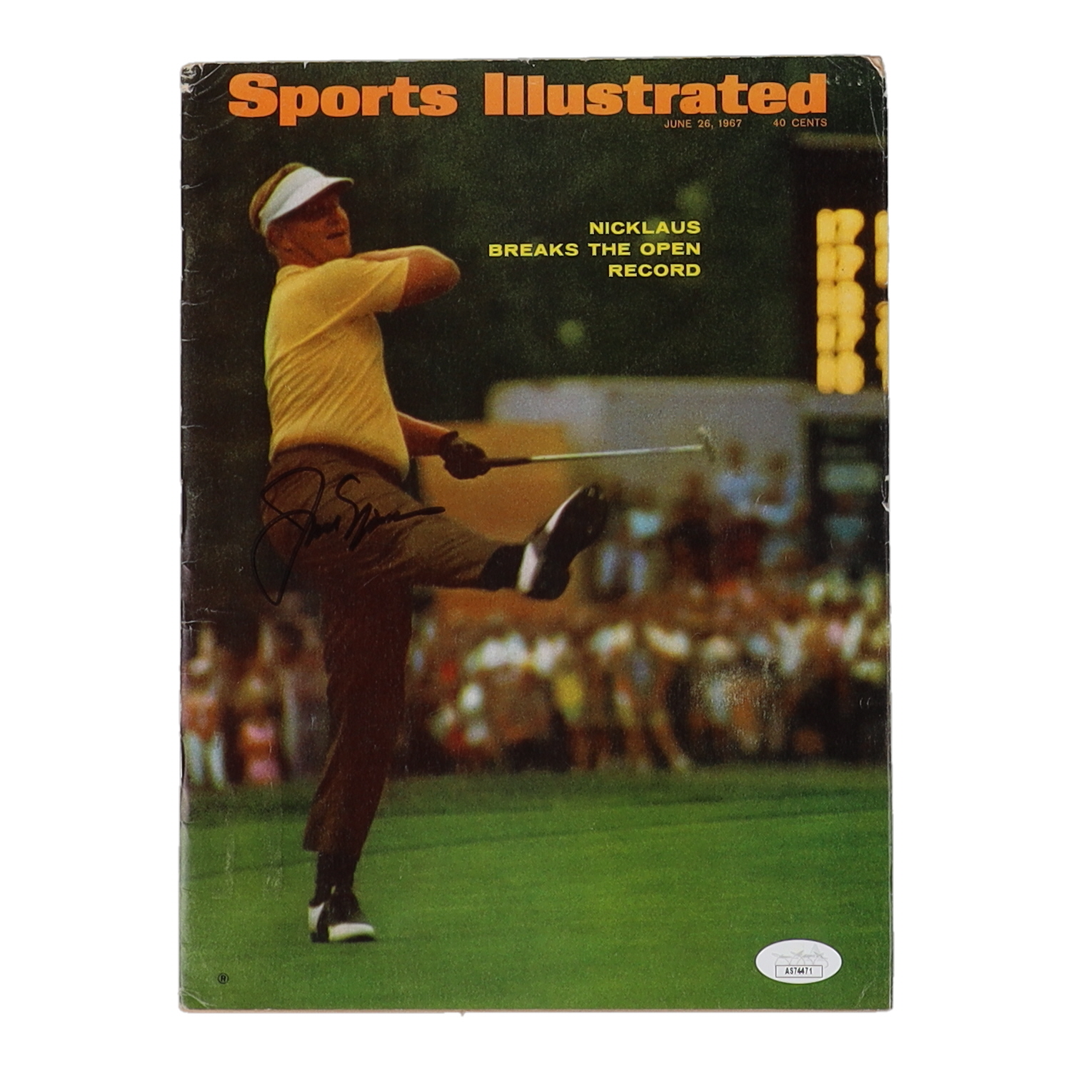 June 26, 1967 issue of "Sports Illustrated" magazine has been hand-signed on the front cover by Jack Nicklaus (HOF). Please note, the magazine shows signs of wear and tear. See photos for more details regarding the condition of the magazine.