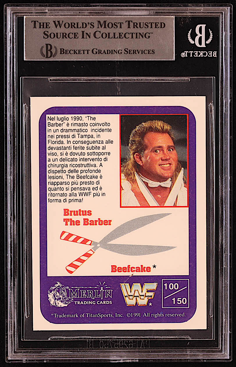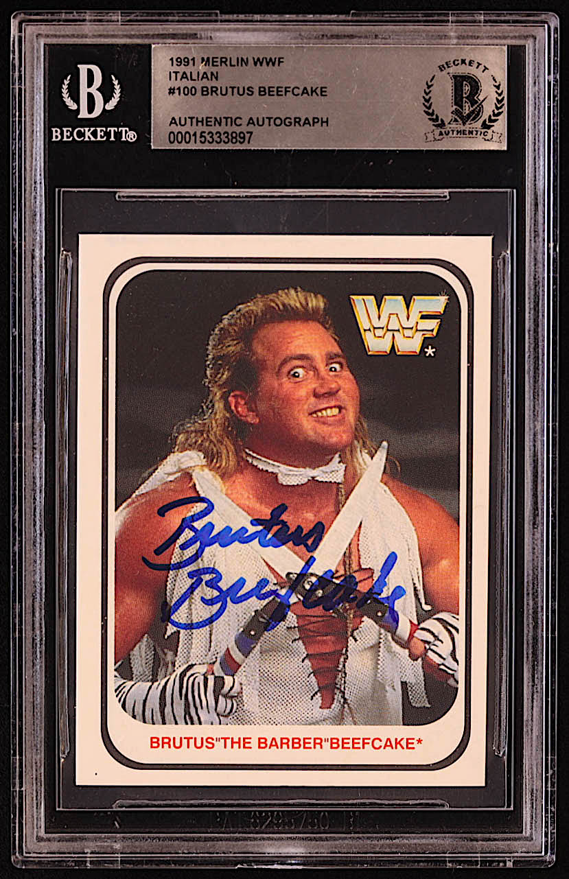 Brutus "The Barber" Beefcake Signed 1991 Merlin WWF Italian #100 (BGS)