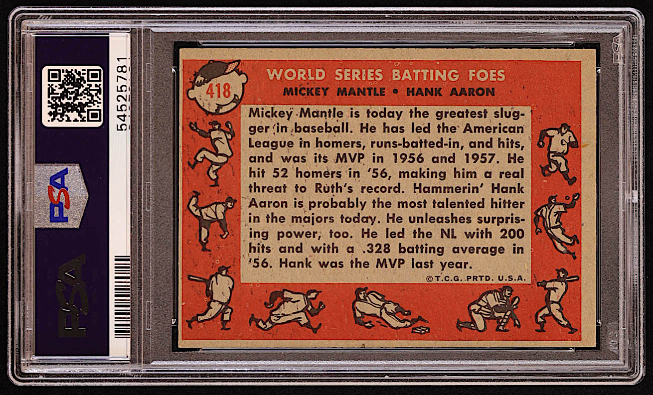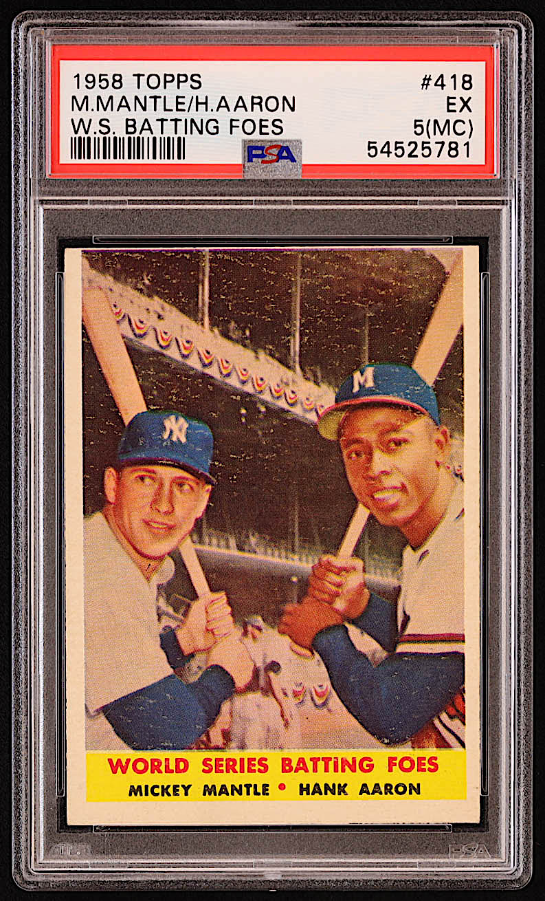 Mickey Mantle / Hank Aaron 1958 Topps #418 World Series Batting Foes (PSA 5) (MC)