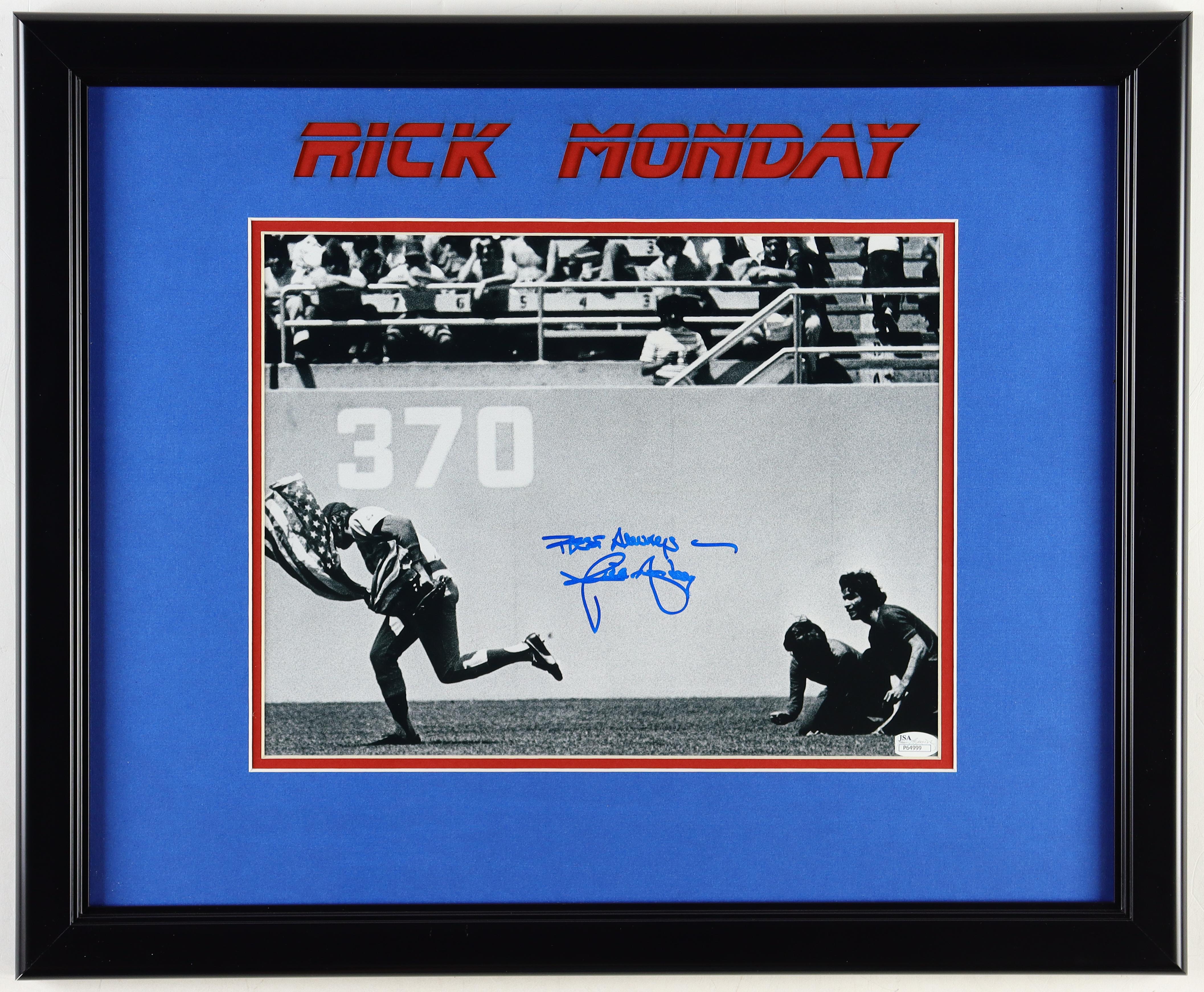 Custom framed photo measures 18" x 22" in size and has been hand-signed and inscribed by Rick Monday (Los Angeles Dodgers).