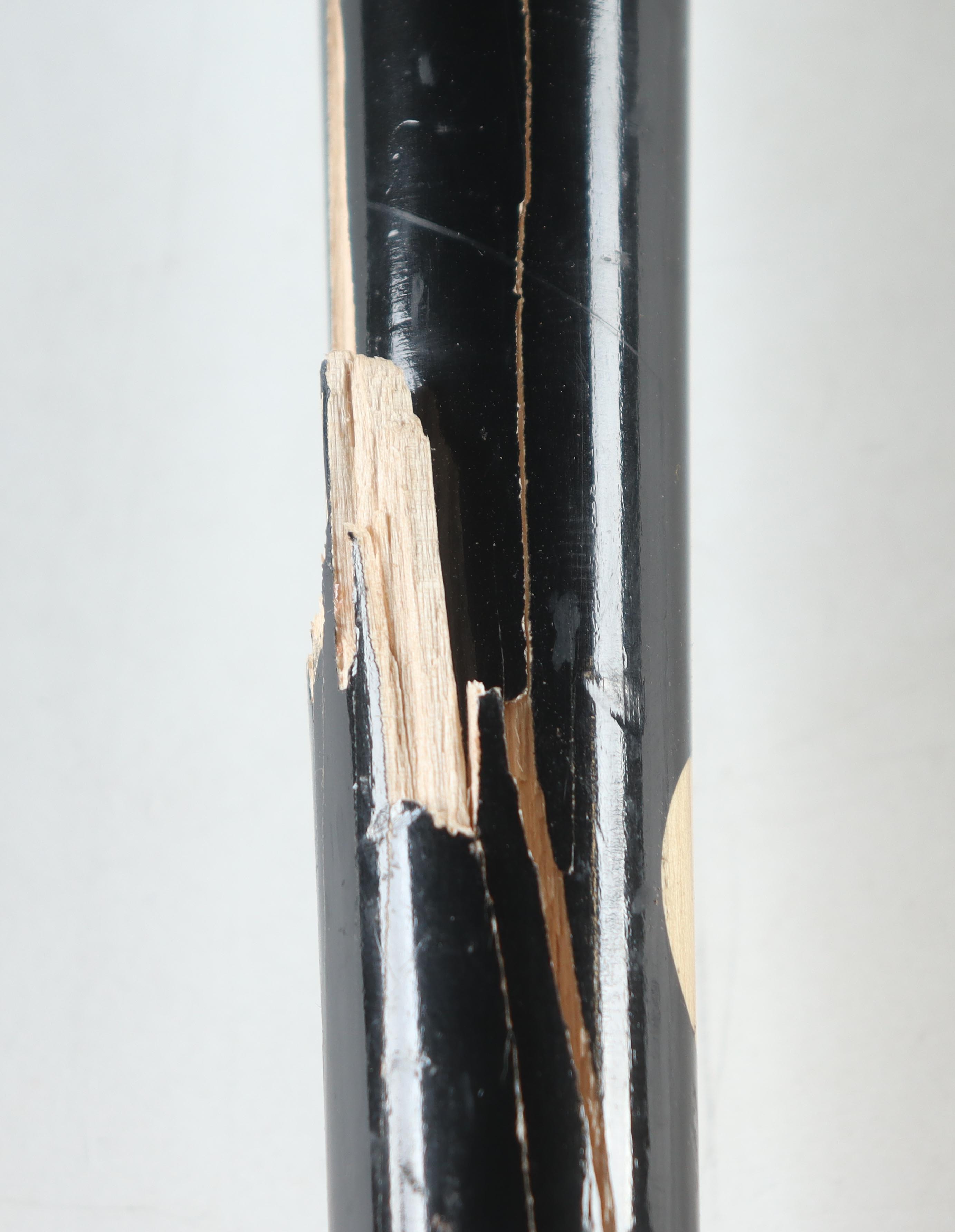 The bat has been game-used by an unknown player and shows associated scuffing, scratches and cracks throughout.