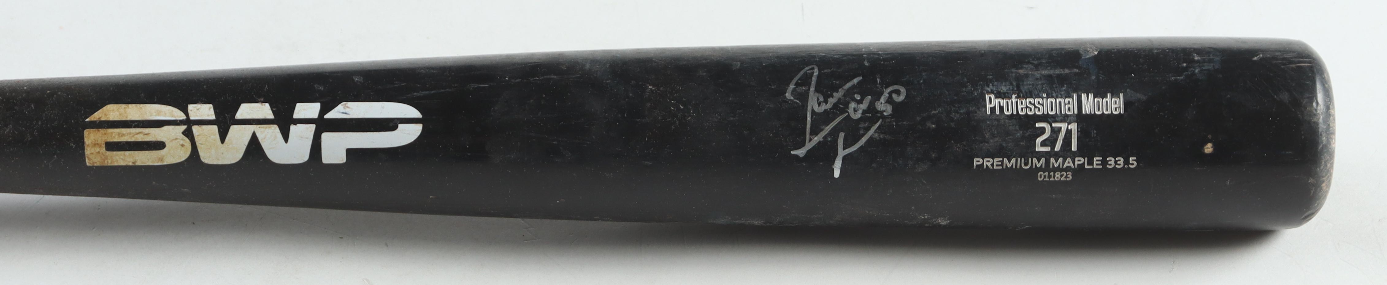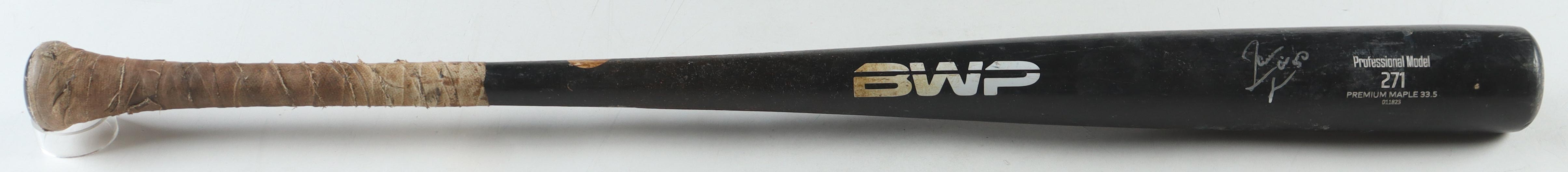 The bat has been game-used by an unknown player and shows associated scuffing, scratches and cracks throughout.