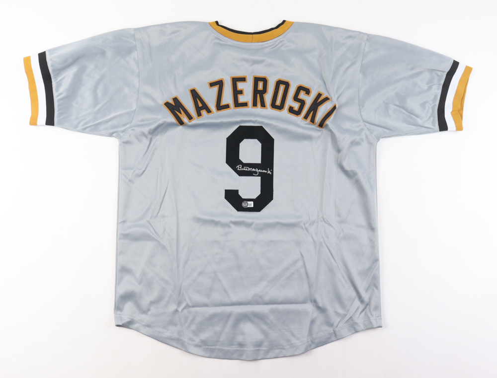 Custom jersey with everything sewn on, size XL. Hand-signed by Bill Mazeroski (HOF).