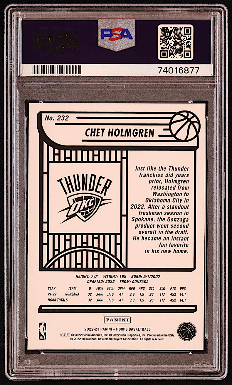 Chet Holmgren 2022-23 Hoops #232 RC (PSA 9)