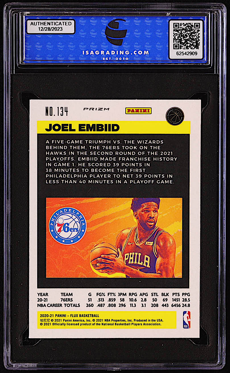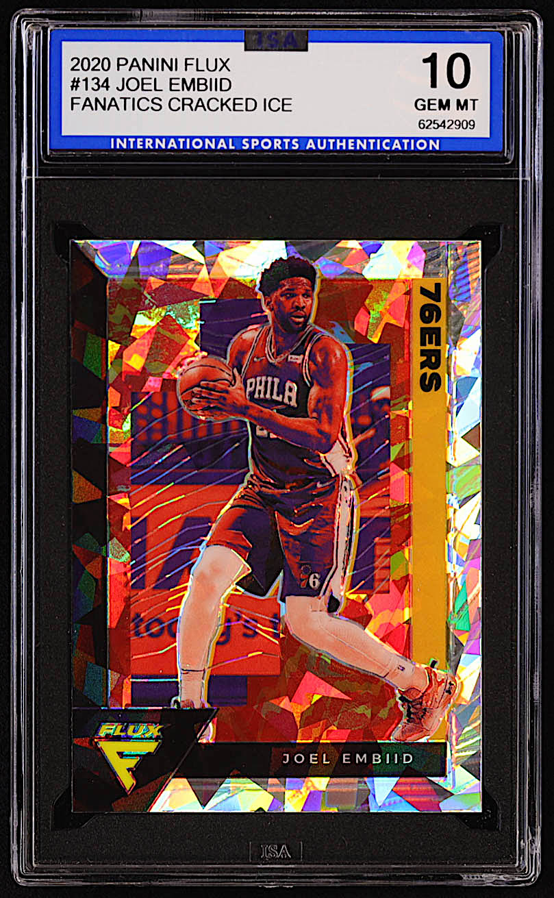 Joel Embiid 2020-21 Panini Flux Fanatics Factory Cracked Ice #134 (ISA 10)