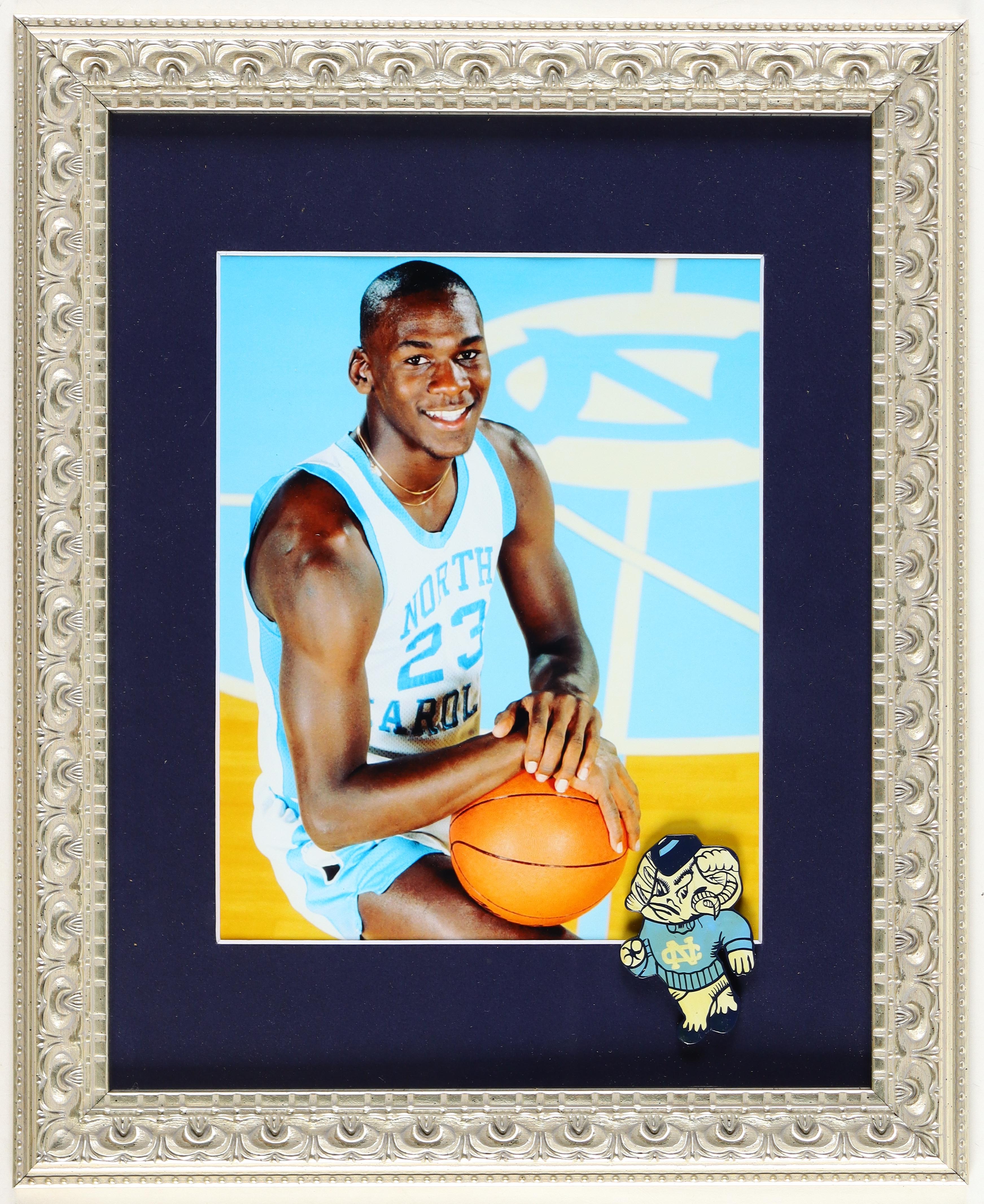 Michael Jordan North Carolina Tar Heels Custom Framed Photo Display With Tar Heels Pin