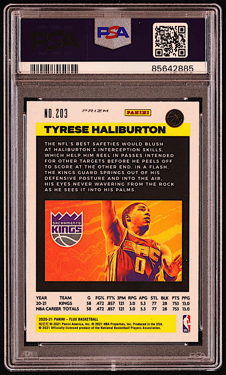 Tyrese Haliburton 2020-21 Panini Flux Fanatics Factory Cracked Ice #203 RC (PSA 9)