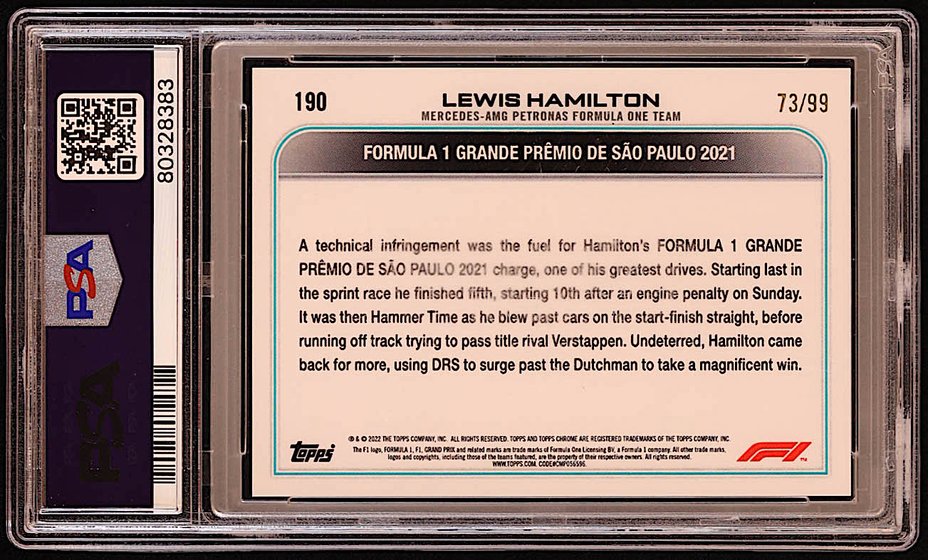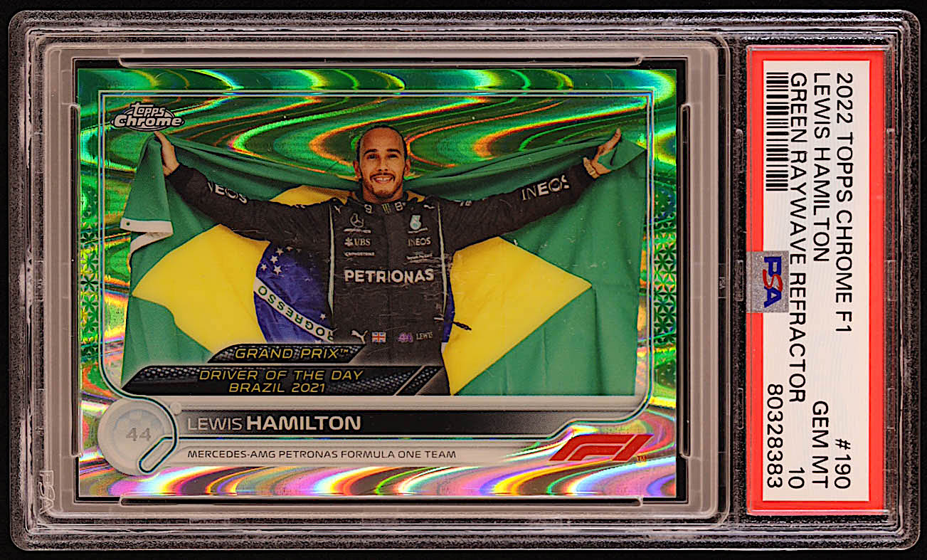 Lewis Hamilton 2022 Topps Chrome Formula 1 Green RayWave Refractors #190 DOD #73/99 (PSA 10)