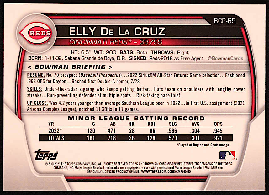 Elly De La Cruz 2023 Bowman Chrome Prospects #BCP65 RC