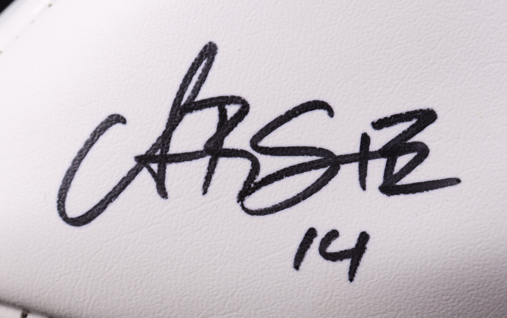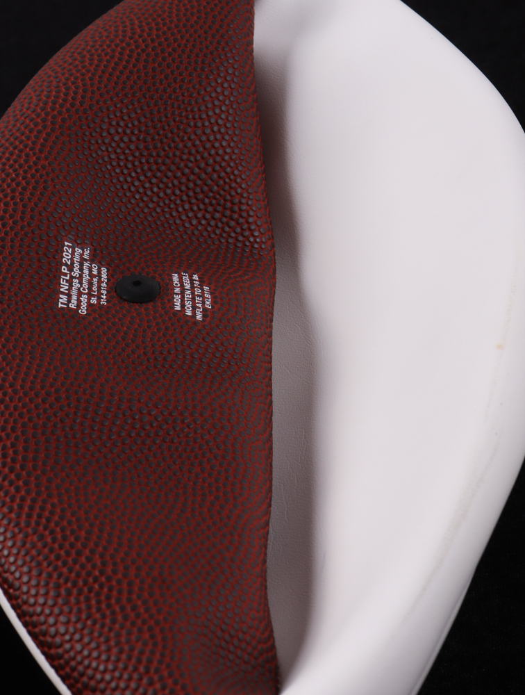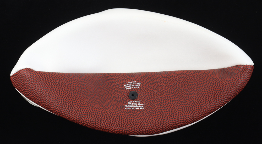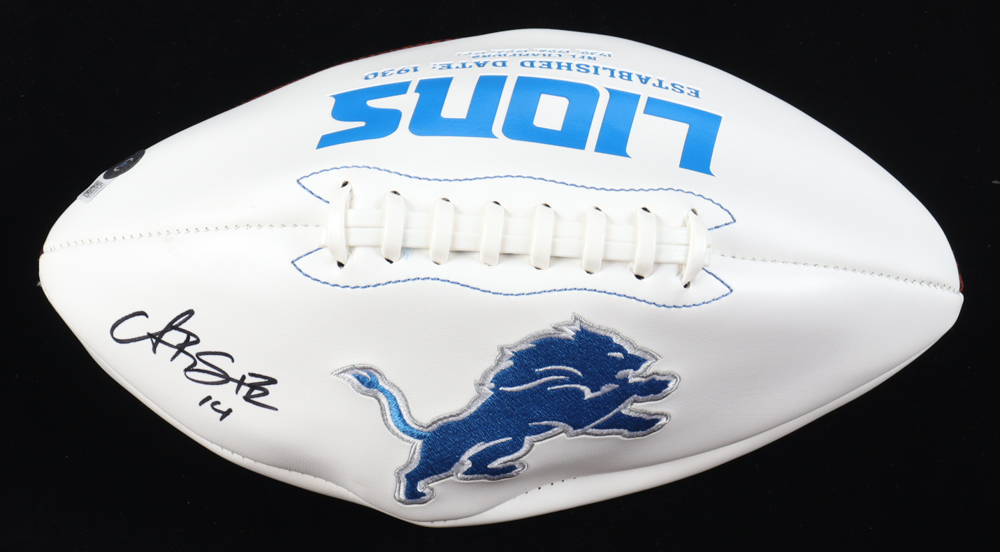 Detroit Lions Logo Football has been hand-signed by Amon-Ra St. Brown. Please note, there is staining and scuffing on the football and it also does not inflate.