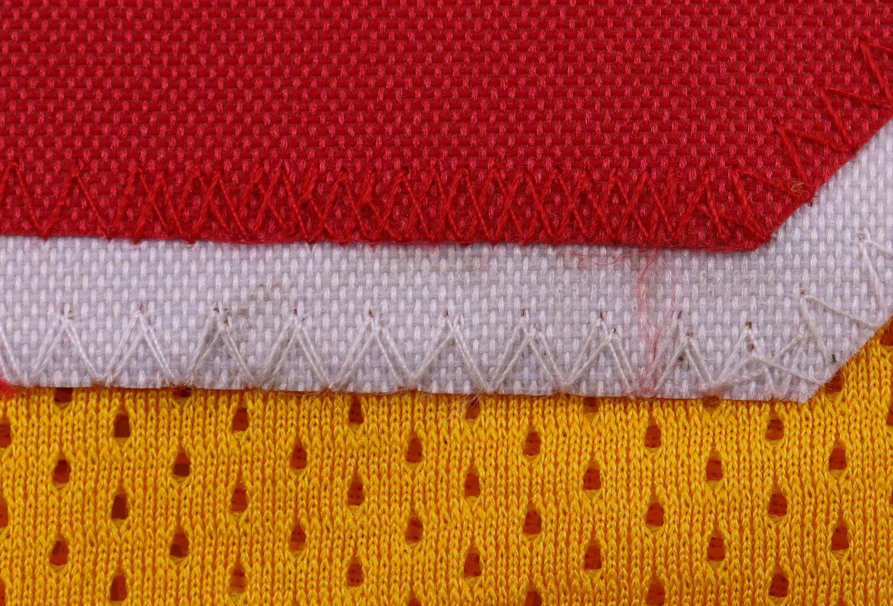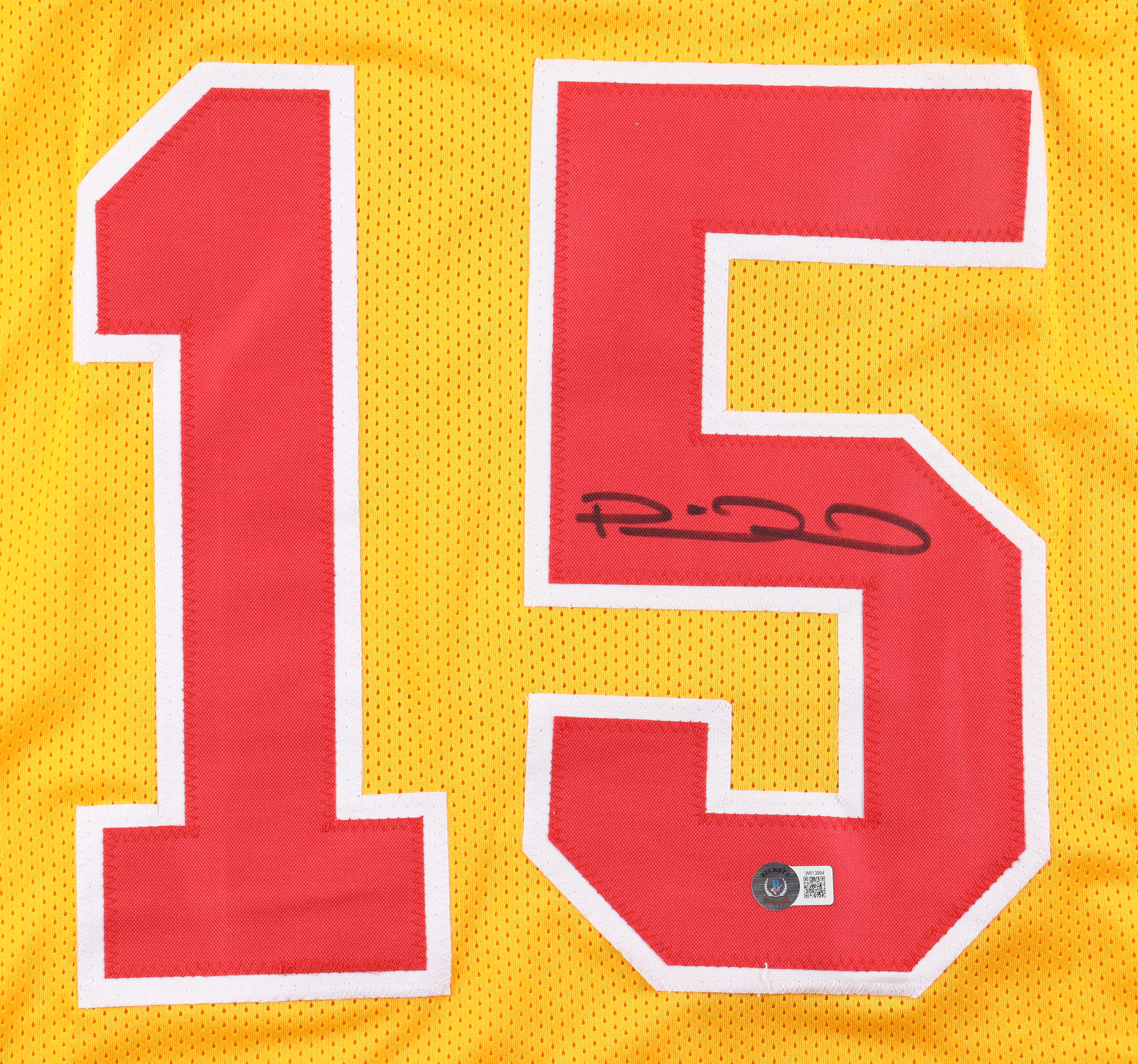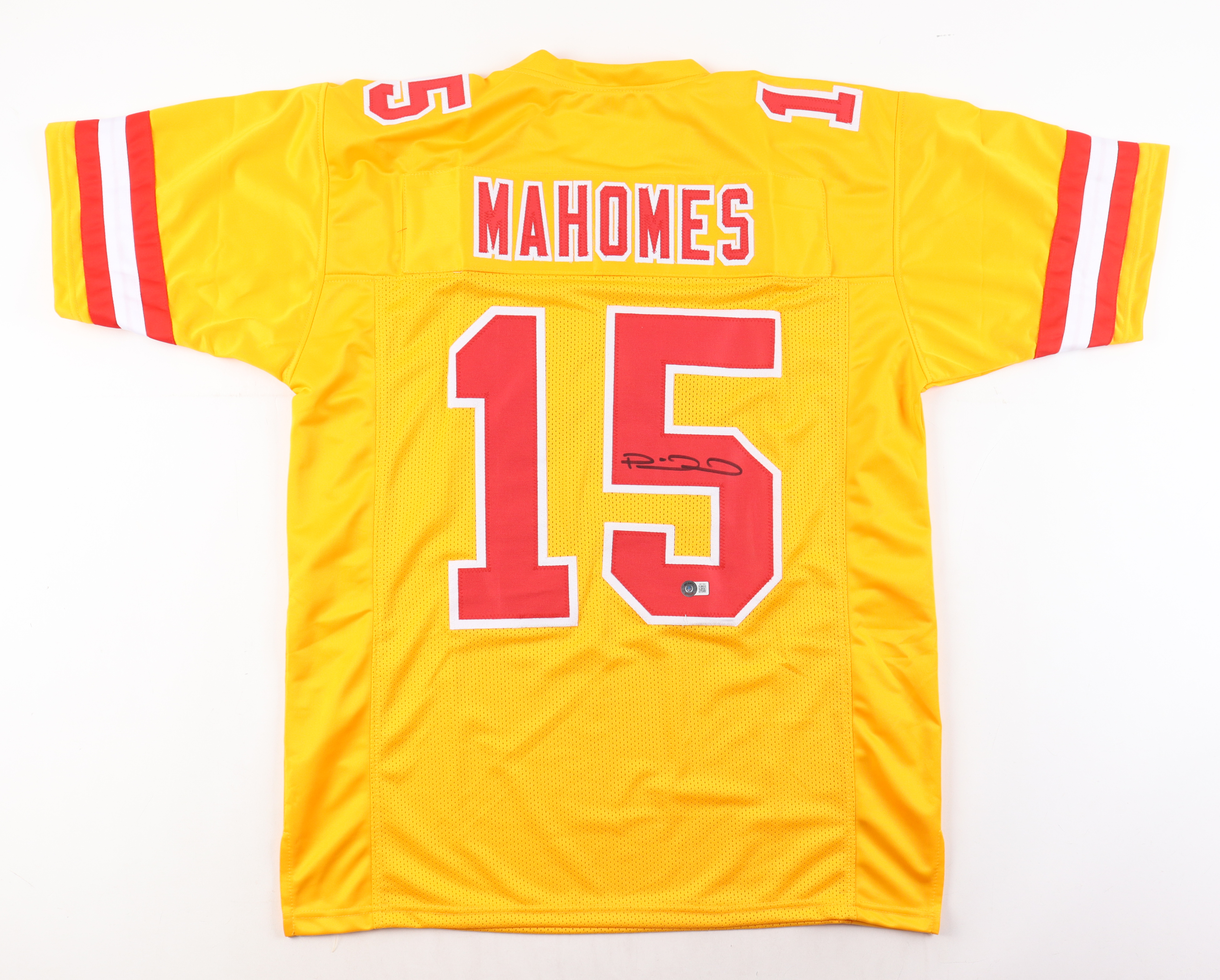 Custom style jersey with everything sewn on, size XL. Hand-signed by Patrick Mahomes. Please note, the jersey shows minor staining.