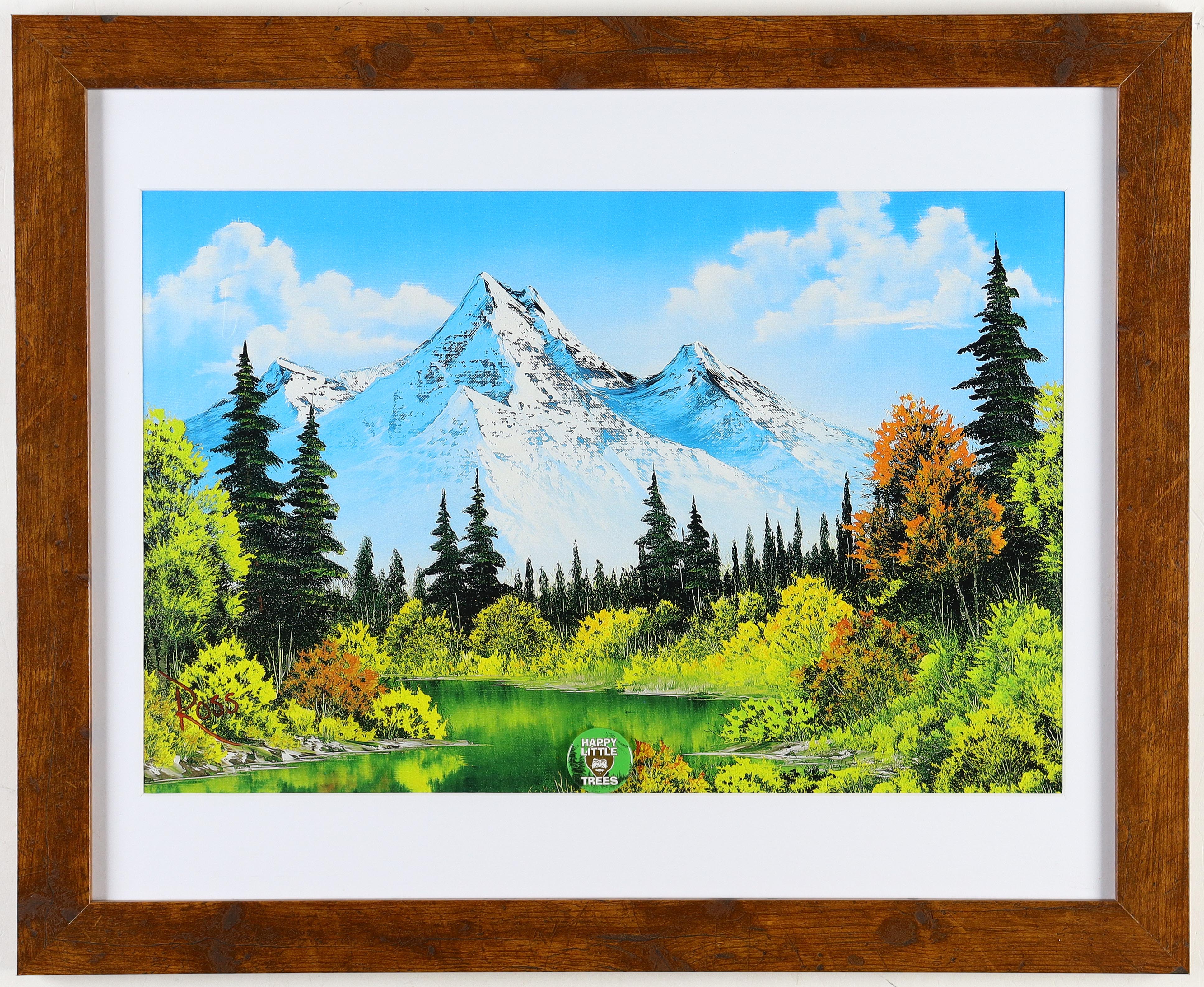 Bob Ross "Meadow Lake" Custom Framed Print with "Happy Little Trees" Pin