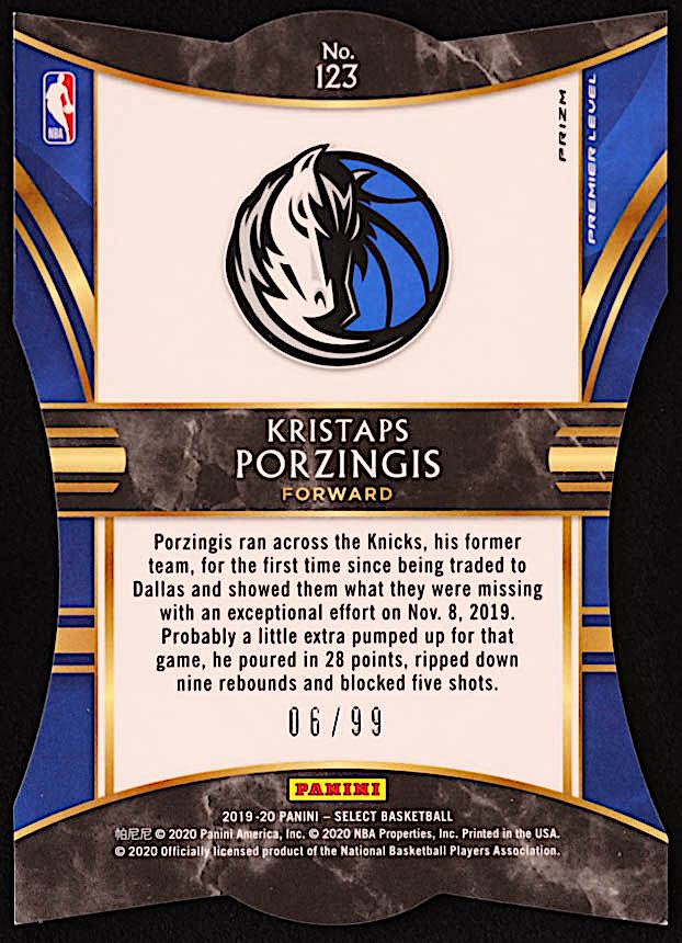 Kristaps Porzingis 2019-20 Select Prizms Purple Die Cut #123 #06/99