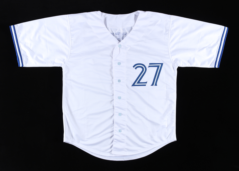 Custom jersey. Everything is sewn on, size XL. Hand-signed by Vladimir Guerrero Jr.