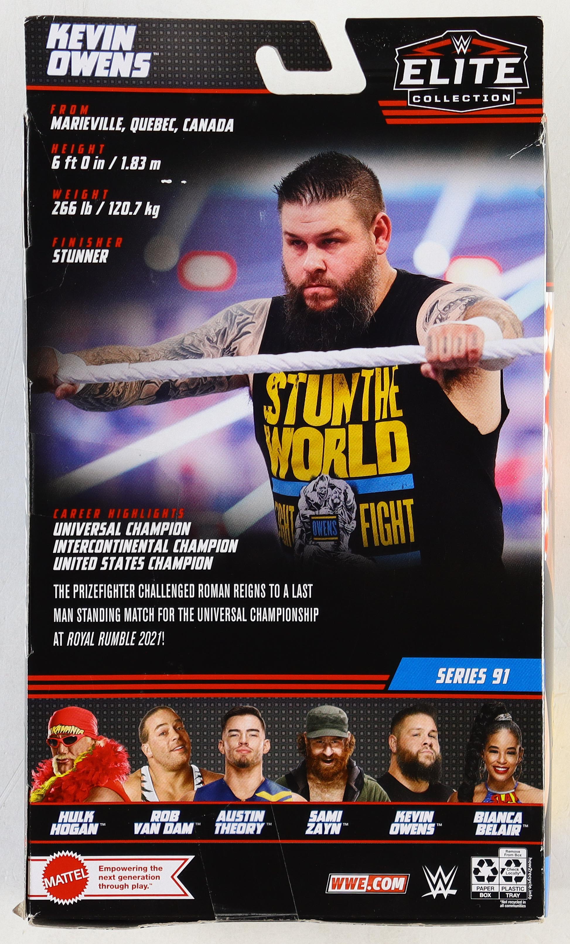Mattel WWE Elite Collection Series 91 action figure. Hand-signed on the box by Kevin Owens.