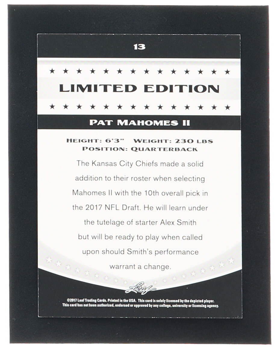 Pat Mahomes II 2017 Leaf Special Release Limited Edition #13 RC