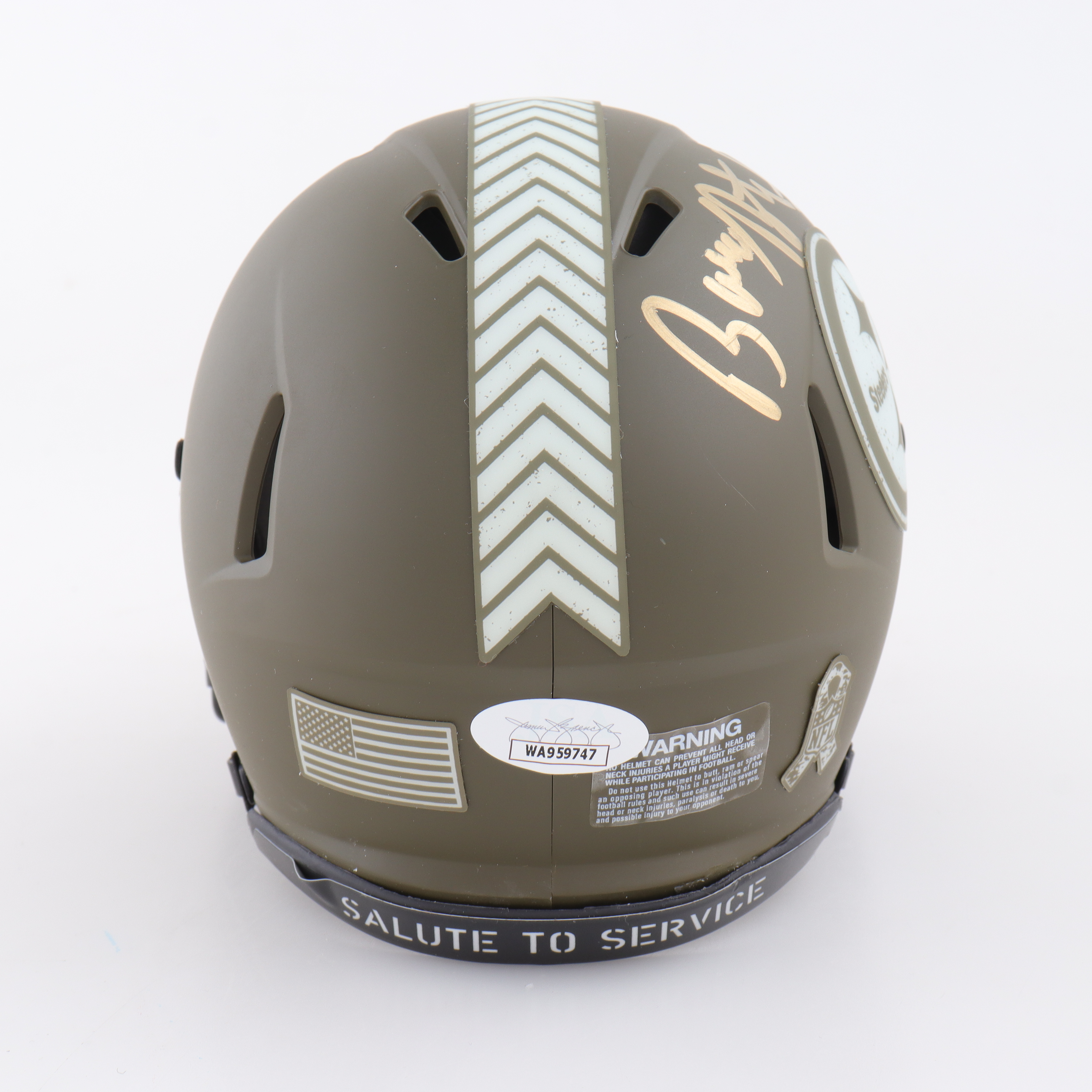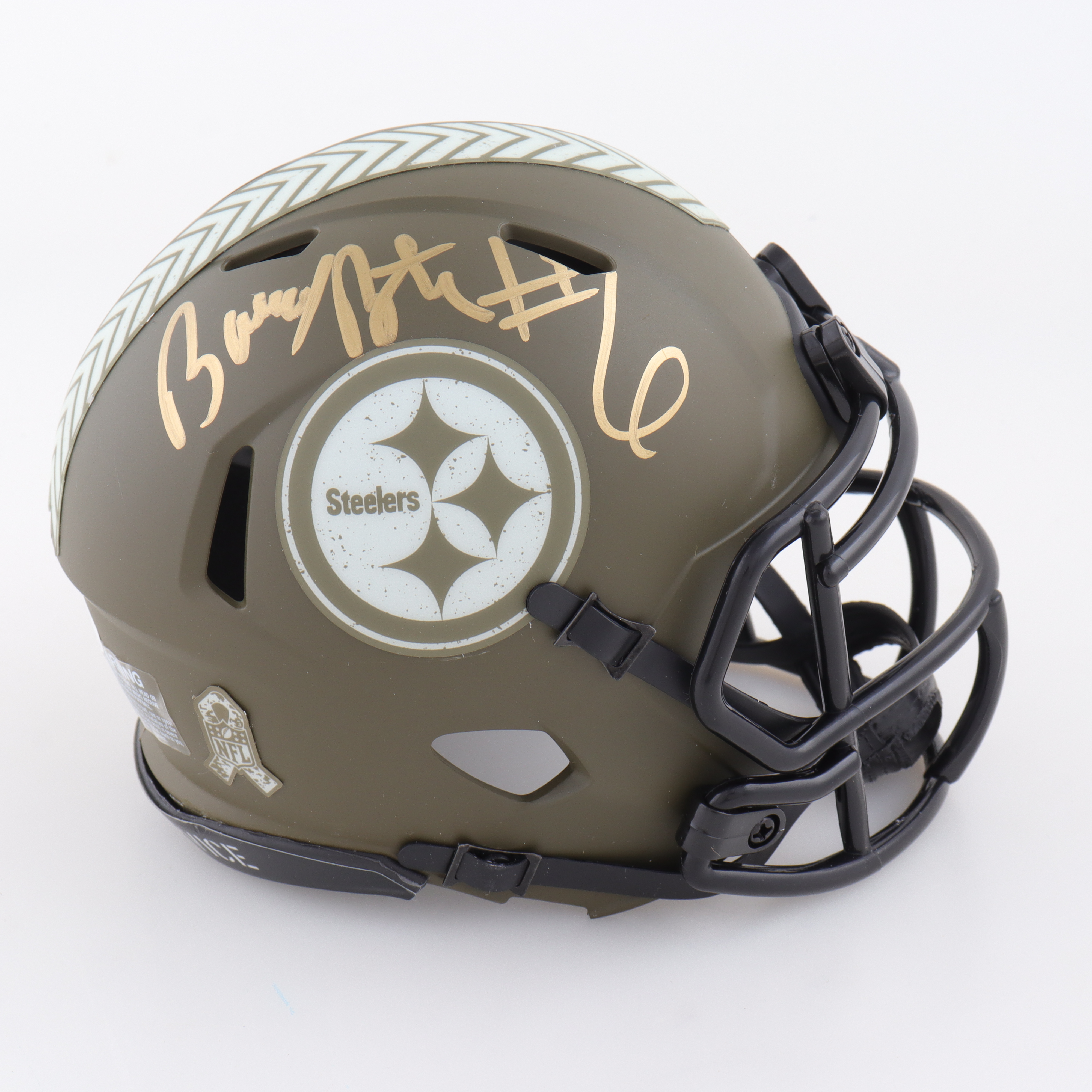 Riddell Pittsburgh Steelers Salute to Service speed mini helmet. Hand-signed by Bubby Brister.