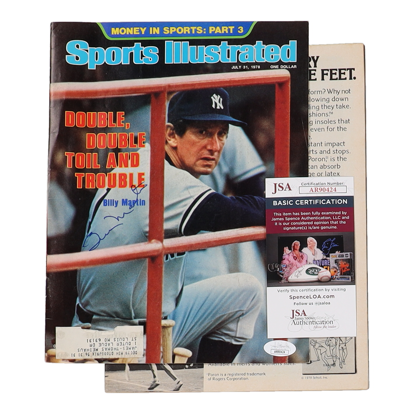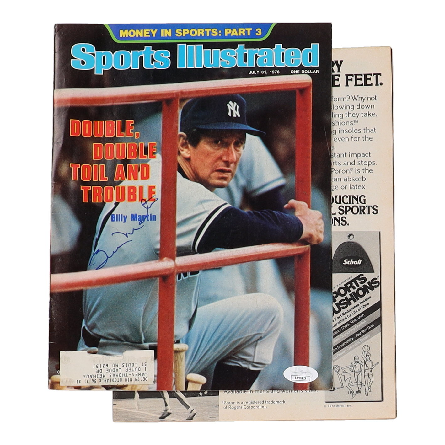 Magazine is dated July 31, 1978. Hand-signed by Billy Martin (D.1989, New York Yankees). Please note, magazine cover has ripped off and magazine shows signs of wear.